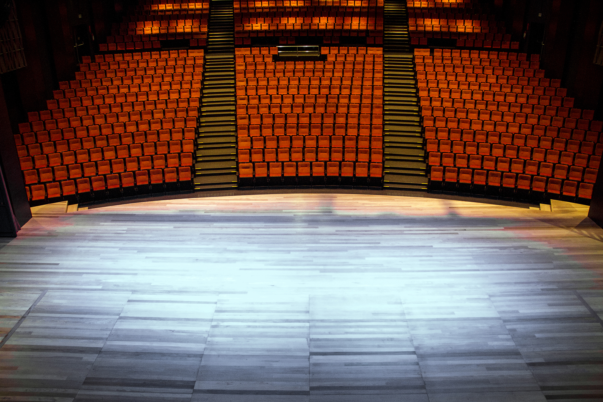 - Palco com coxias, quartelada, urdimentos, varandas de manobra, passarelas de iluminação técnica e doca seca