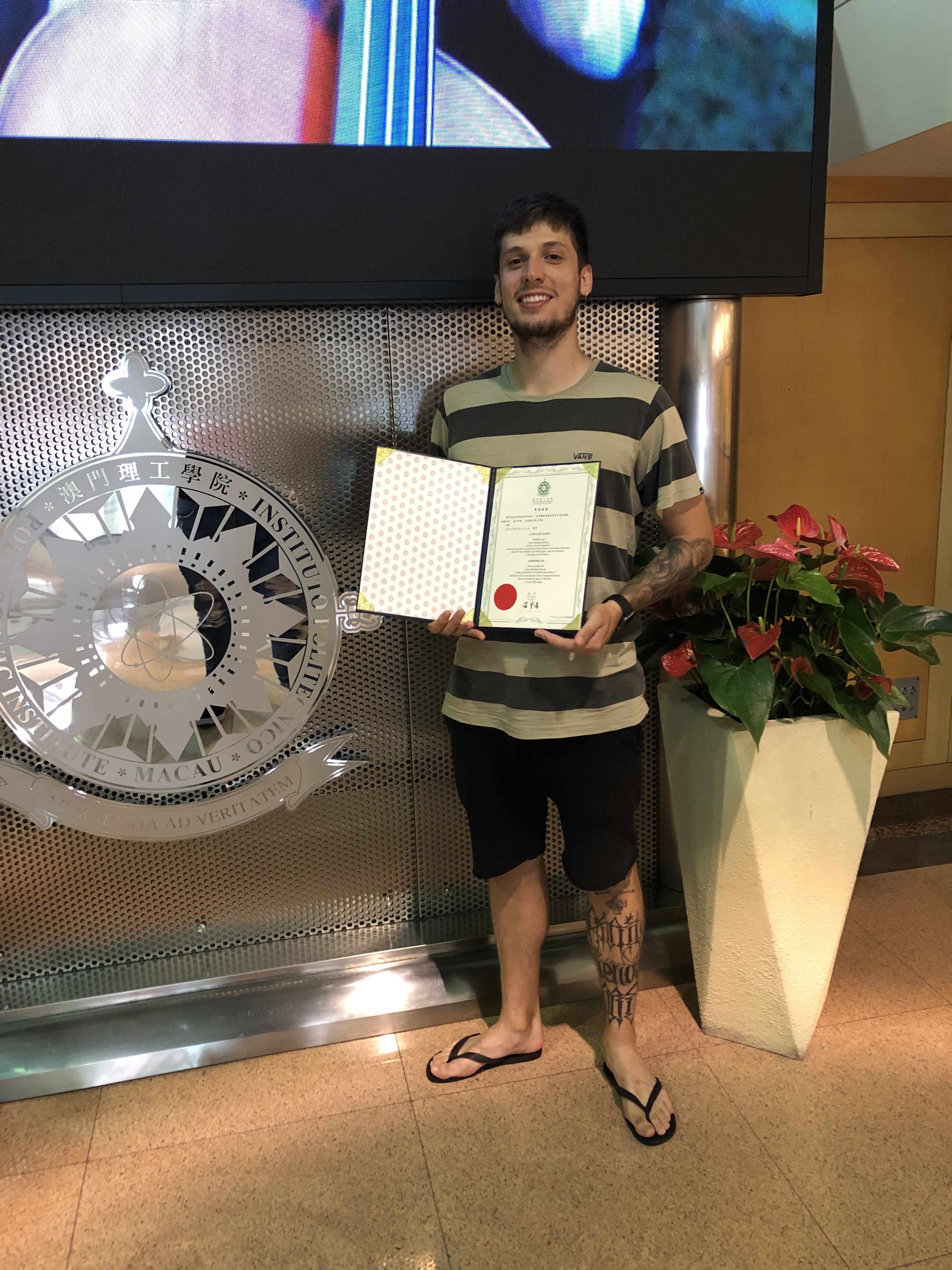 Felipe vai permanecer no exterior durante mais tempo. Ele conta que sempre pensou em morar fora do Brasil. “Quando a Univates anunciou o edital para Macau logo me inscrevi e falei com meus pais.” Durante a estada em Macau, além da rotina intensa de estudos, ele aproveitou as férias para viajar. Conheceu todo o Sudeste Asiático: Tailândia, Indonésia, Filipinas, Malásia, Vietnã, Hong Kong, Camboja, além de várias cidades da China e de Portugal. No começo ele relata ter sentido saudade de casa e dos amigos, mas a adaptação não exigiu muito. Com a conclusão do curso de Licenciatura pelo convênio da Univates com o IPM, novas possibilidades surgem. E Felipe aproveitou uma delas. “Vou fazer um mestrado agora em outra universidade”, diz. Vão ser mais dois anos na região. Ele também está trabalhando. “Após o mestrado minha ideia é ficar aqui e trabalhar integralmente, quero fazer minha vida aqui e, quem sabe, no futuro, ir morar em outro país”, revela. Felipe descreve os últimos quatro anos como engrandecedores. “É uma experiência de vida. Lembro como se fosse ontem de ver Macau pela primeira vez com o brilho nos olhos e me apaixonar por essa cidade, a mesma onde quero e vou construir meu futuro como pessoa e profissional”, projeta.
