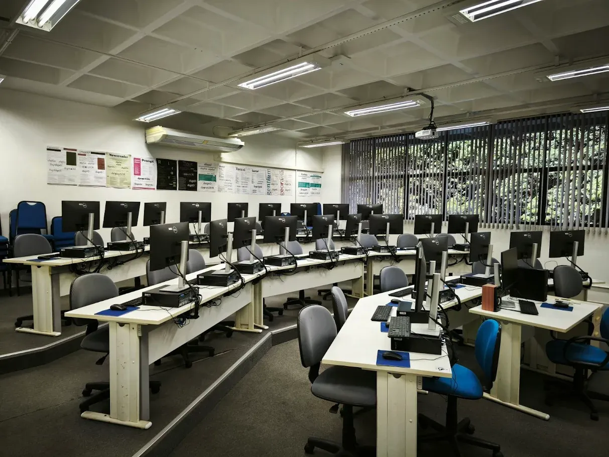 Laboratório conta com 25 computadores equipados com Adobe Creative Cloud e softwares padrão da indústria de design, garantindo um ambiente profissional para criação e aprendizado.