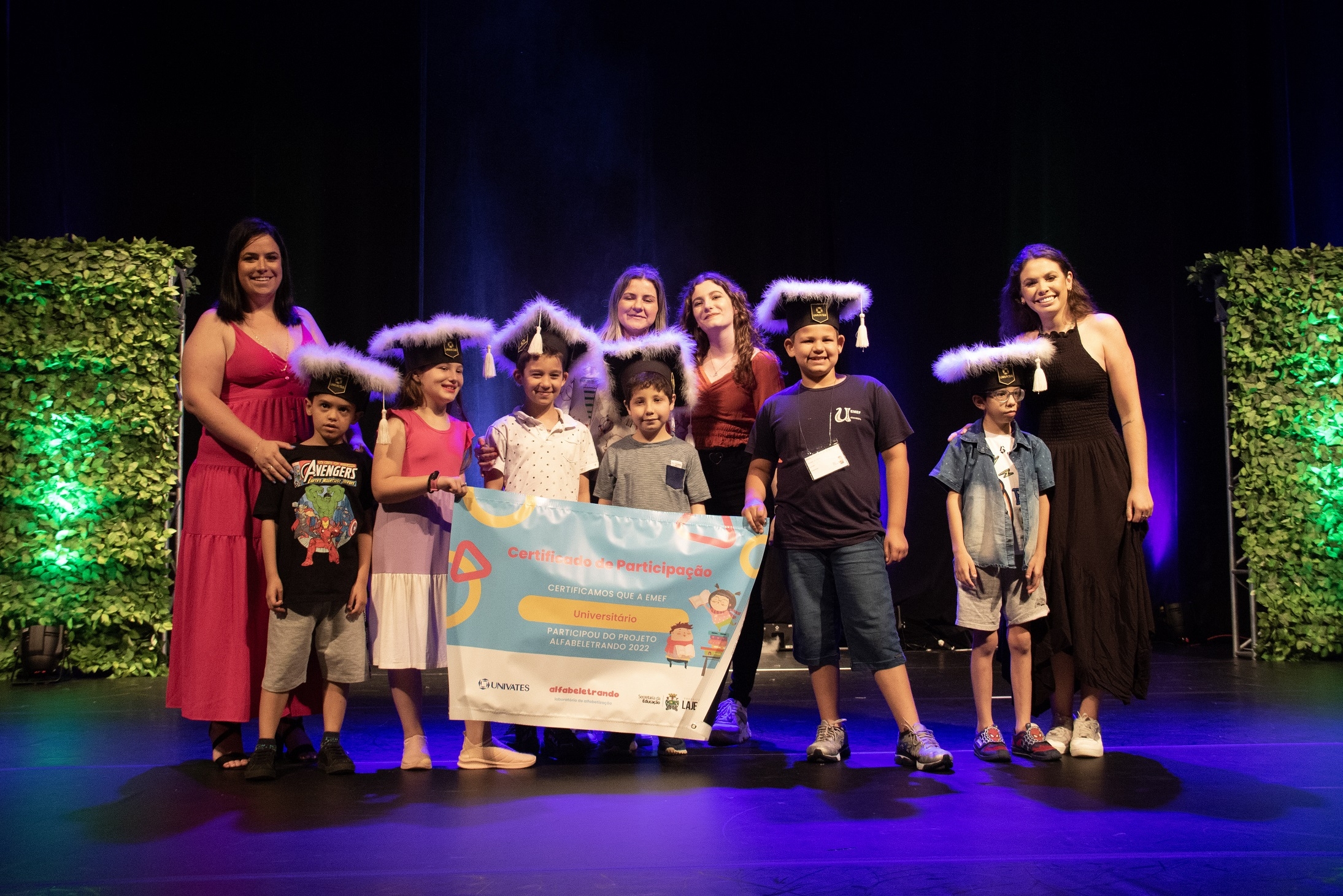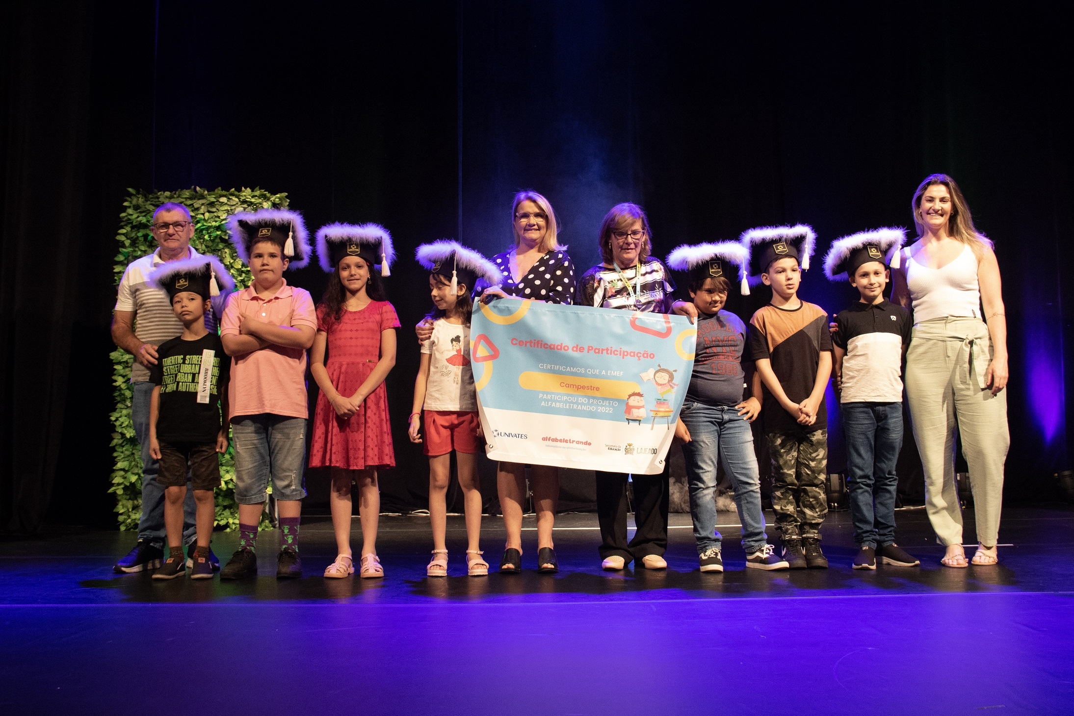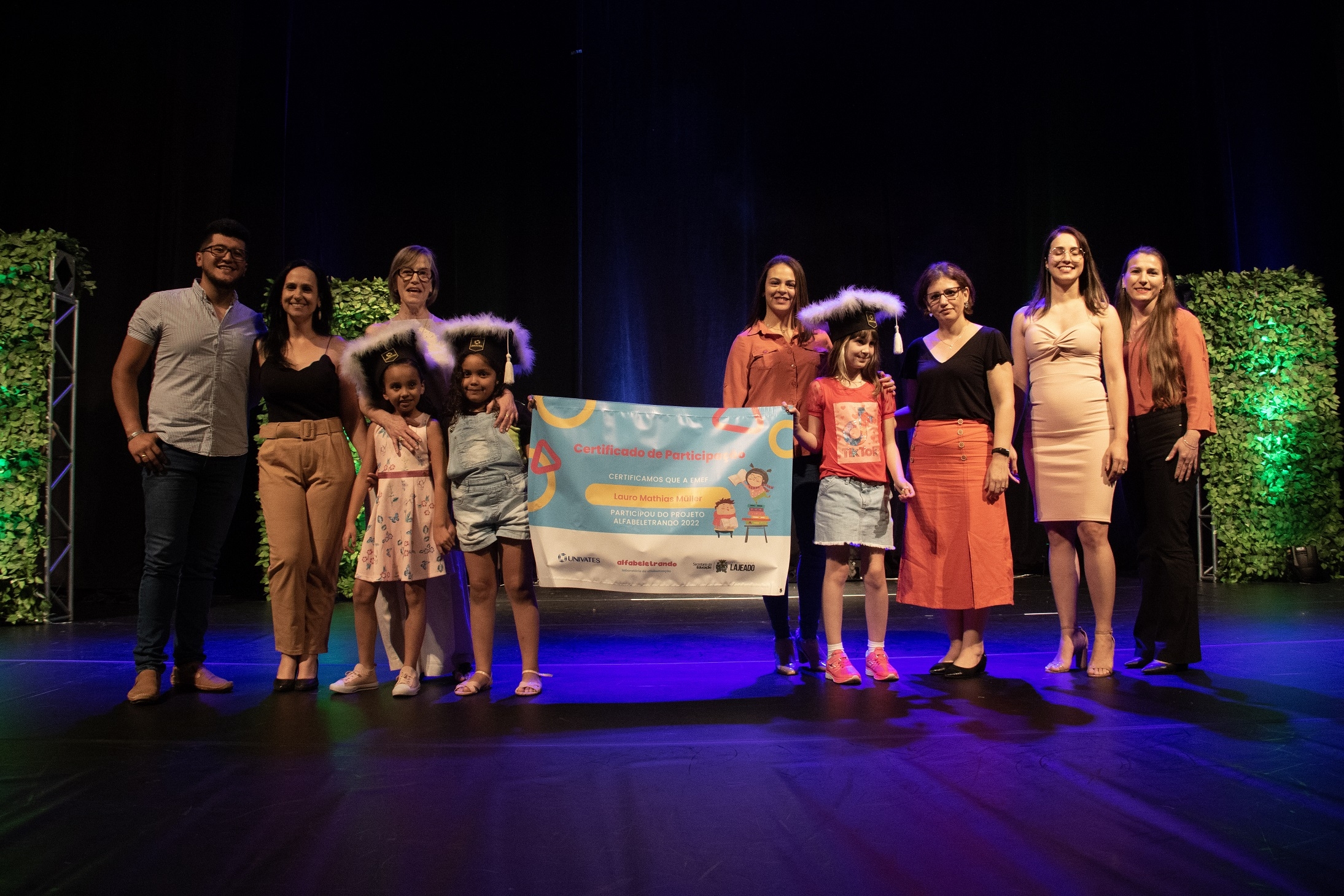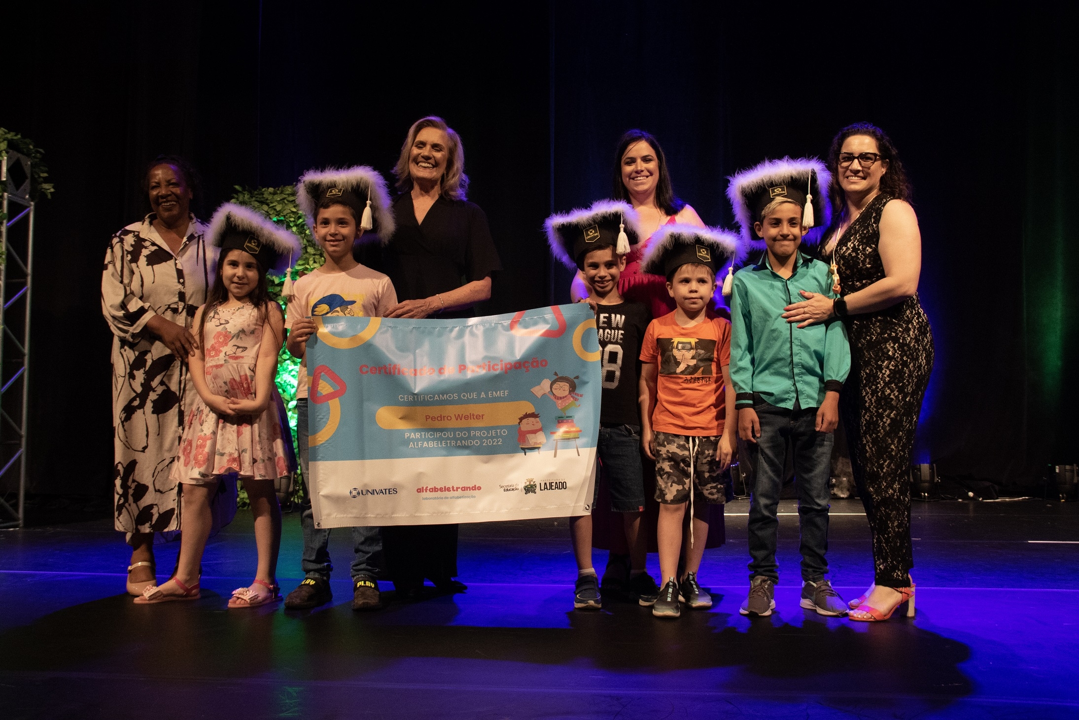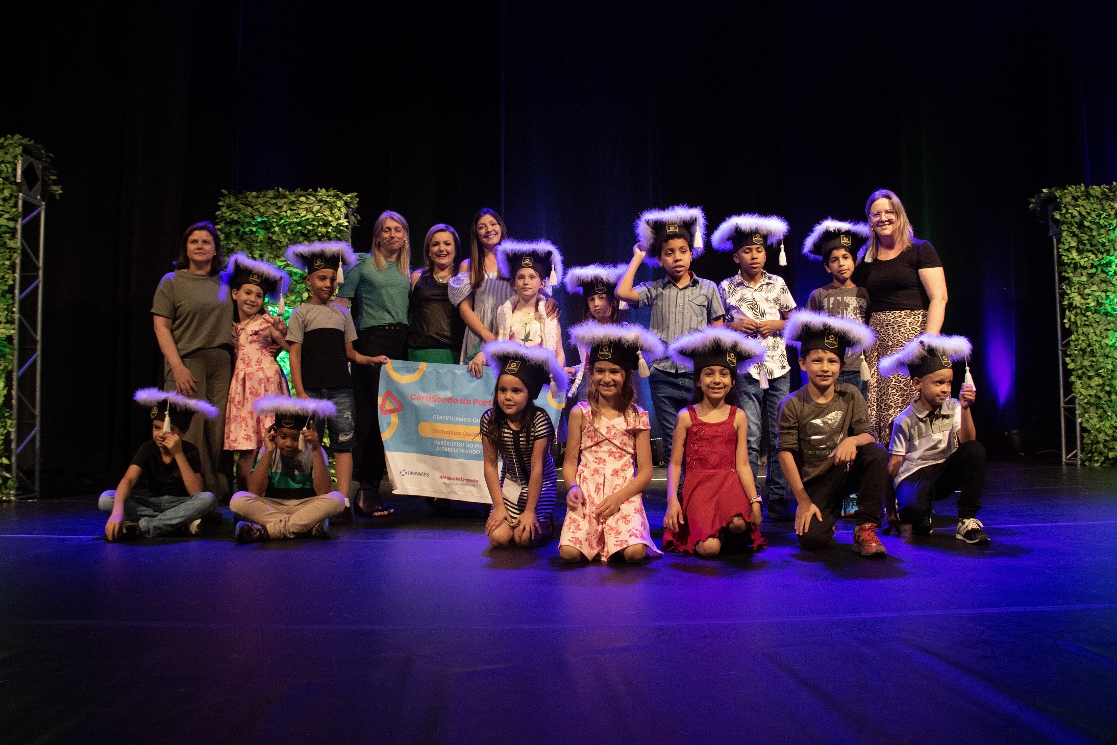 Cerca de mil pessoas participaram da cerimônia de encerramento da primeira edição do projeto Laboratório de Alfabetização – Alfabeletrando, desenvolvido pela Universidade do Vale do Taquari - Univates em parceria com a Prefeitura de Lajeado. O evento foi realizado na noite de quinta-feira, 24, no Teatro Univates, e contou com a presença de aproximadamente 500 crianças que participaram da iniciativa, além de familiares, professores e autoridades.