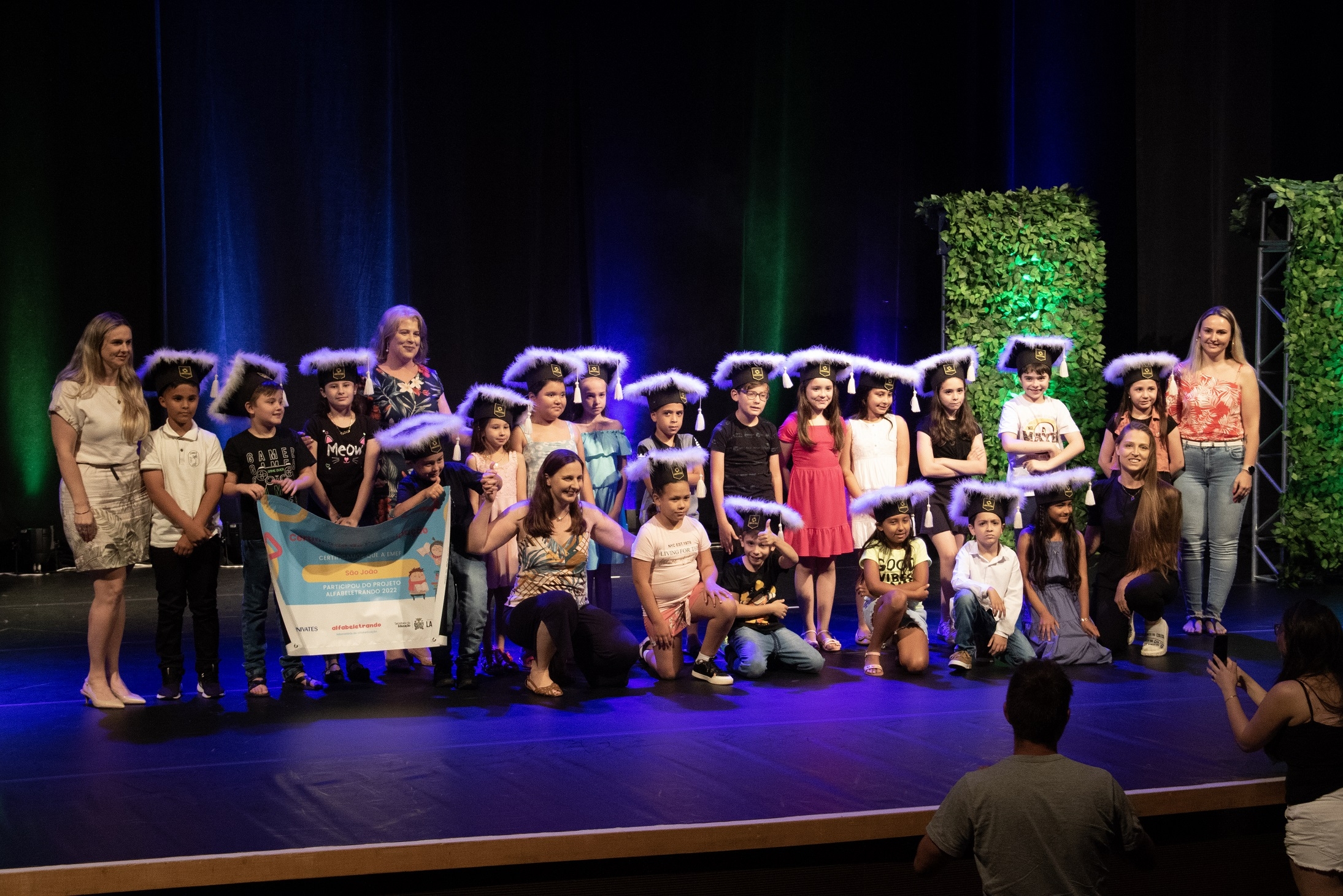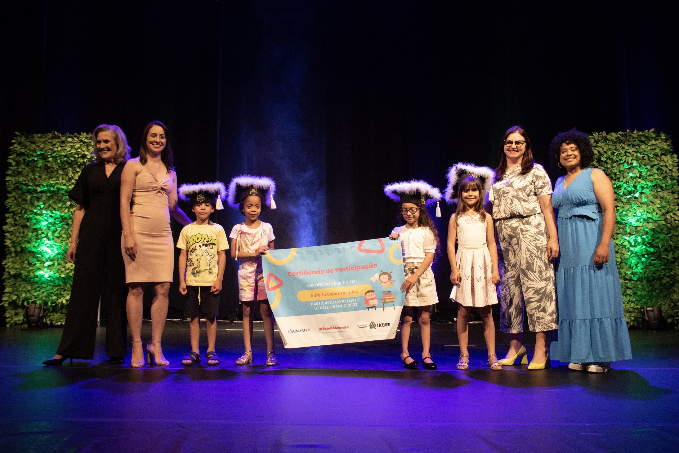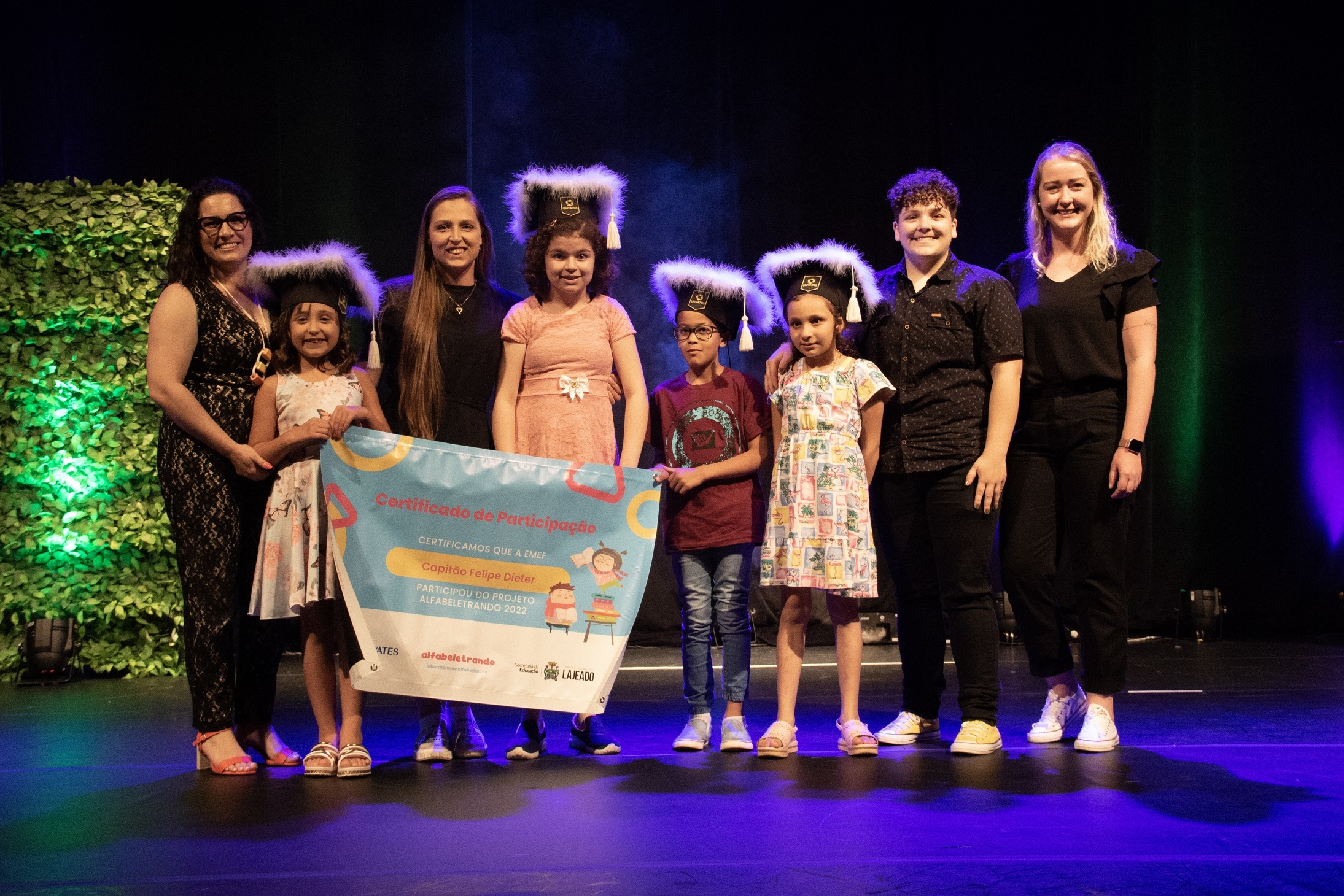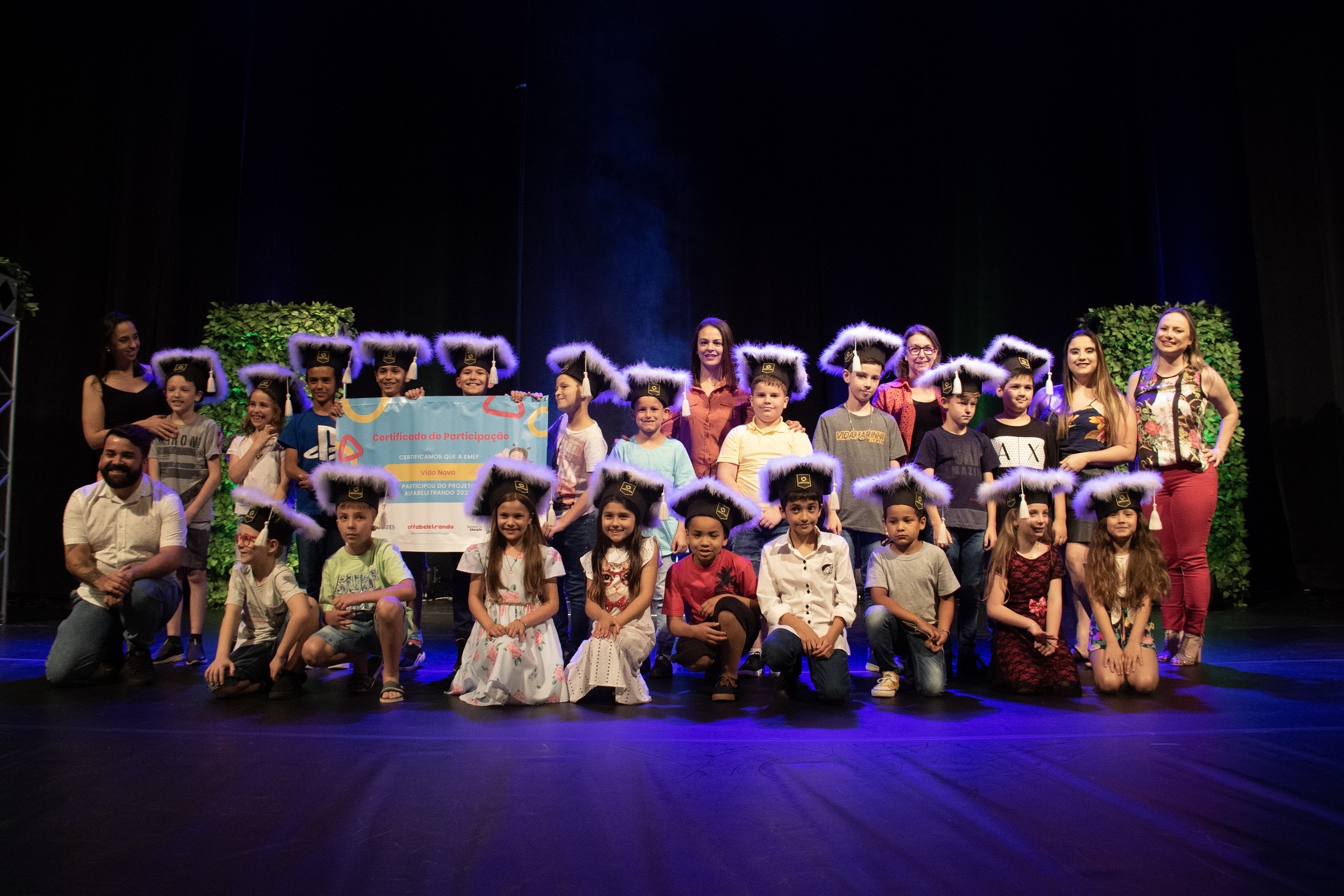 Cerca de mil pessoas participaram da cerimônia de encerramento da primeira edição do projeto Laboratório de Alfabetização – Alfabeletrando, desenvolvido pela Universidade do Vale do Taquari - Univates em parceria com a Prefeitura de Lajeado. O evento foi realizado na noite de quinta-feira, 24, no Teatro Univates, e contou com a presença de aproximadamente 500 crianças que participaram da iniciativa, além de familiares, professores e autoridades.