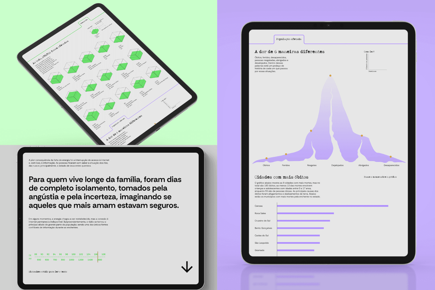 Entre os destaques da edição de 2025 está o trabalho de conclusão de curso de Marina Sartori Becker, premiado na competição e voltado à área de design digital com enfoque social. O projeto surgiu de um desejo pessoal da autora de desenvolver uma proposta de visualização de dados com autonomia criativa, sem vinculação a demandas comerciais ou clientes externos. A iniciativa buscou traduzir, por meio de linguagem visual, os impactos das enchentes que atingiram o Rio Grande do Sul em 2024, com o objetivo de sensibilizar pessoas que não vivenciaram diretamente os efeitos da tragédia.
