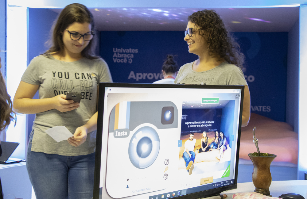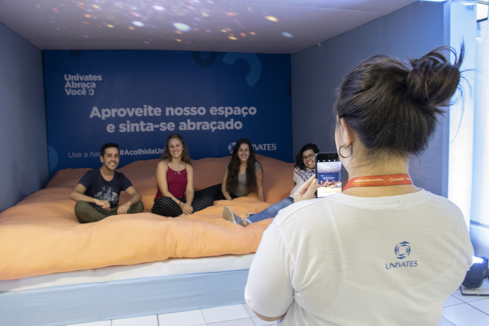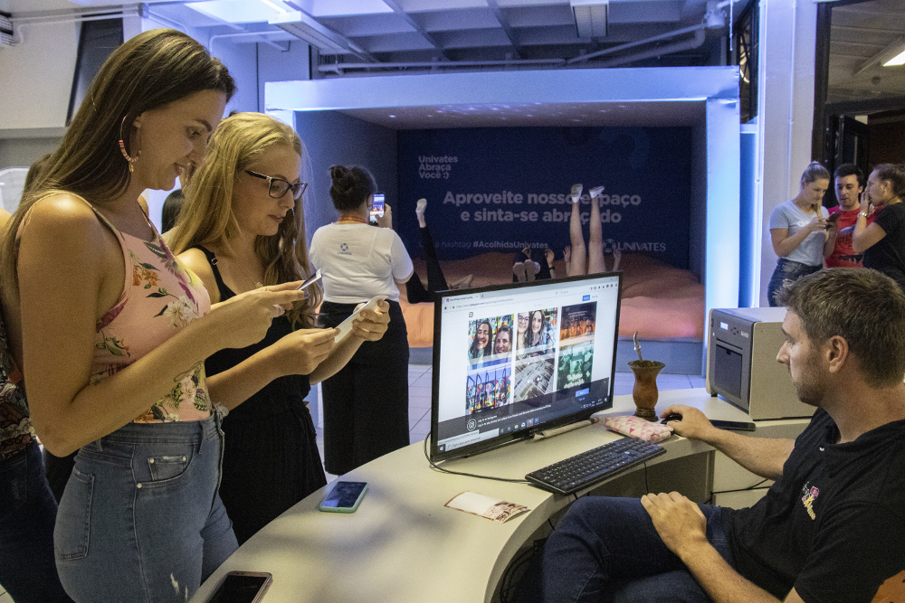 Prédio 9: um ambiente que irá abraçar você. No balcão do 3º andar, ao lado do elevador, você poderá imprimir a foto compartilhada nas suas redes com a hashtag #acolhidaunivates