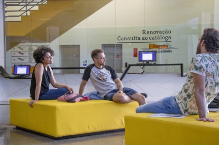 O campus conta com diversos ambientes para estudos e de convivência disponíveis para alunos e docentes