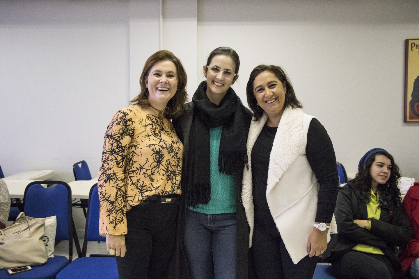 As diplomadas em Psicologia Adriana Rossetto Dallanora e Denise Cyrne contaram suas experiências aos estudantes da disciplina de Psicologia Institucional na manhã de 23 de maio.