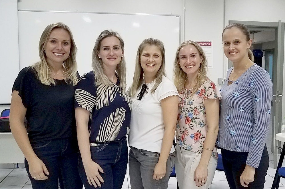 As diplomadas em Nutrição pela Univates Kátia Barbieri Becker Delwing, Paula Elisa de Oliveira, Patrícia Bergjohann e Bianca Schmidt Schneider estiveram conversando com os alunos da disciplina de Nutrição Humana, na noite do dia 13 de março.