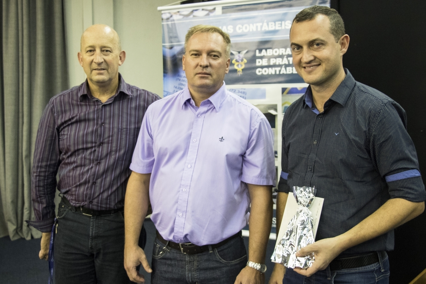 Os diplomados em Ciências Contábeis Vitor Antônio Fontana e Daniel Bellin foram convidados pelo professor Ari Kunzel para retornar à Instituição para conversar com os alunos do curso sobre a profissão de contador.