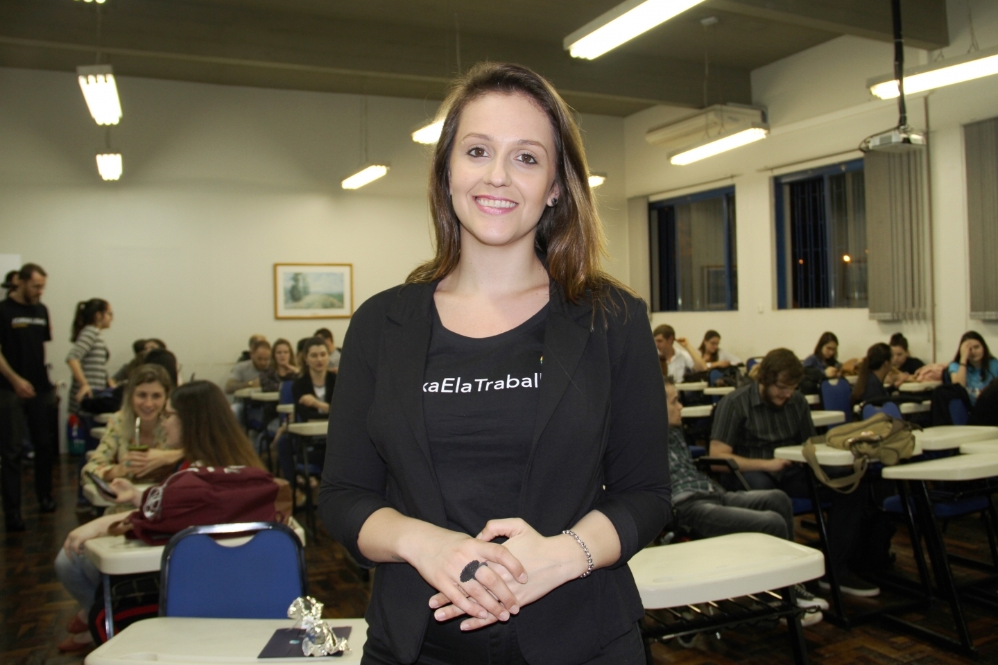 A diplomada do curso de Jornalismo Camila Diesel esteve na Univates participando do painel “Mulheres no Jornalismo Esportivo”, que contou com a presença de alunos do curso. Atualmente, Camila é apresentadora e repórter da Rádio Guaíba.