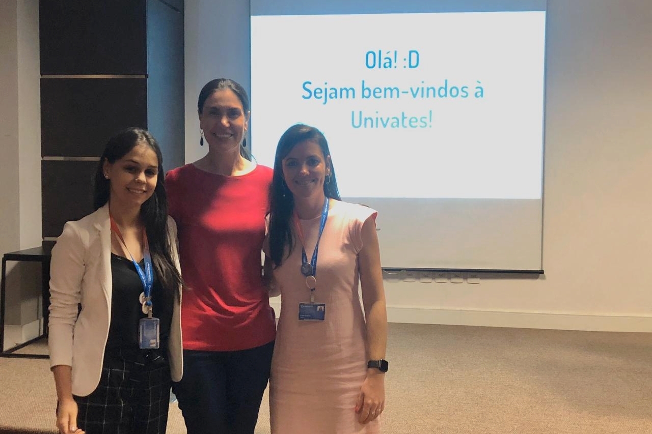 Em novembro as diplomadas em Psicologia e Administração de Empresas Janaina Schneider, Kemily Pereira Monçani e Denise Nobre de Oliveira foram convidadas pela professora Bernardete Cerutti para apresentar a Diretoria de Desenvolvimento de Pessoas (Dipes) da Univates e falar sobre cargos, salários e benefícios de funcionários na disciplina de Gestão de Pessoas.