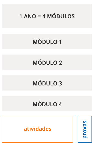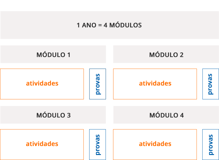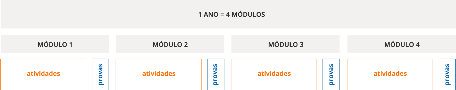 Os componentes curriculares se subdividem em unidades de estudo semanais. Assim, a cada semana são disponibilizados novas atividades e materiais de estudo no ambiente virtual.