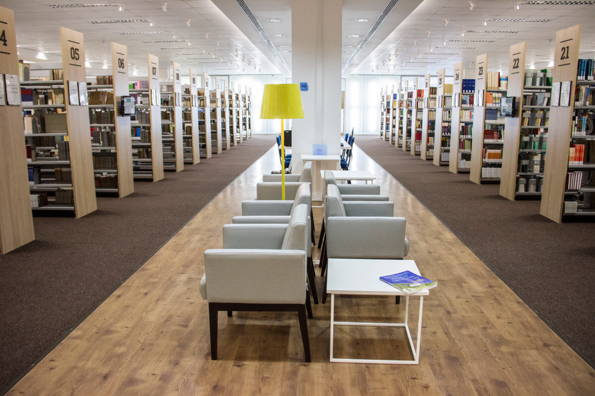 A Biblioteca, totalmente automatizada, uma das mais modernas da América Latina, possui mais de 160 mil volumes no acervo físico.