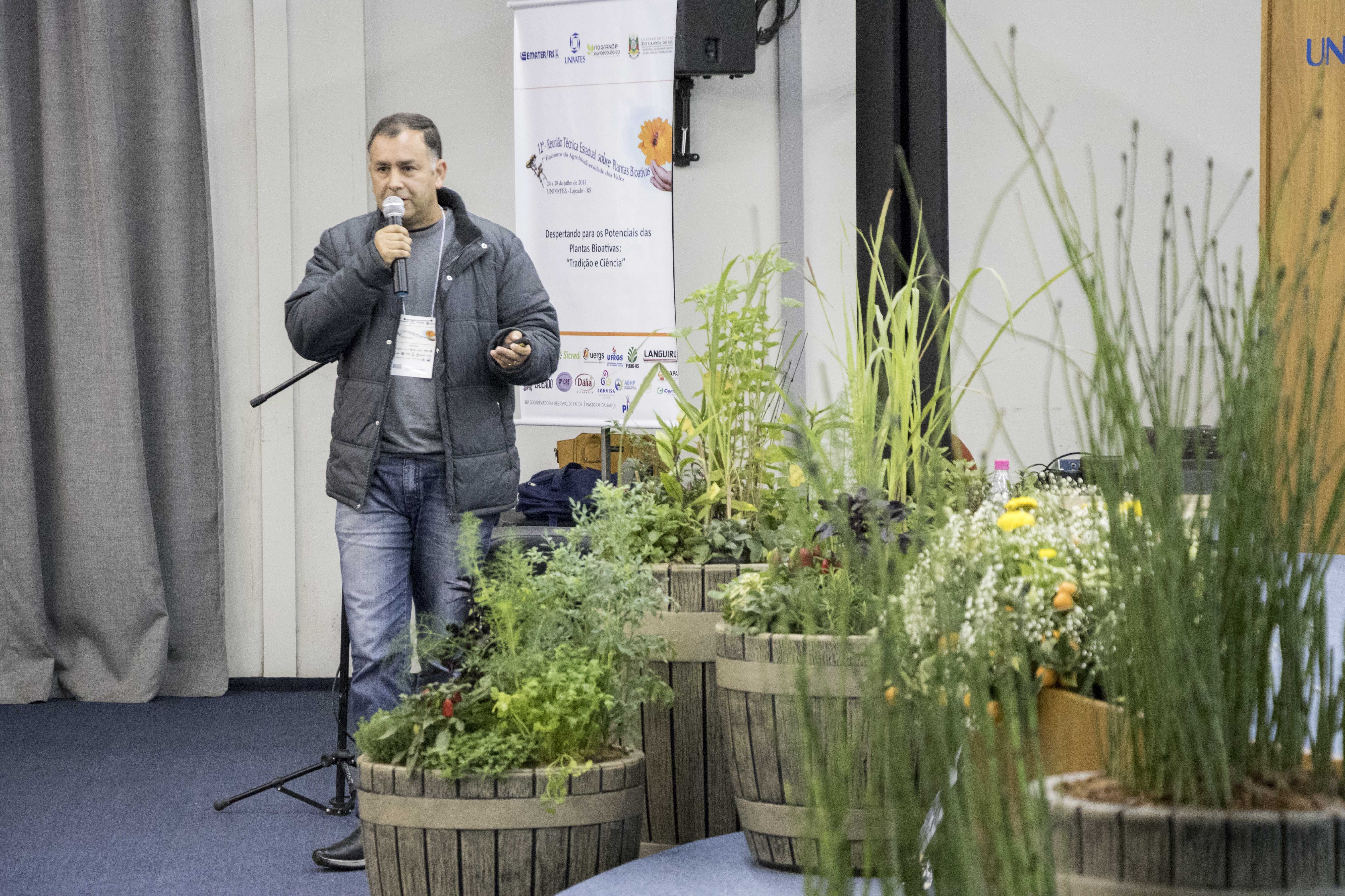 Já o doutor Eduardo Ethur iniciou sua fala sobre a relação histórica entre o homem e as plantas e estudos que apontam que entre 1981 e 2014, mais de 75% dos fármacos tiveram suas estruturas descritas com base em algum componente natural. “Essa aplicação se deu a partir do uso tradicional das espécies vegetais, o que geralmente se inicia pelo consumo de chás”, afirmou ele. Ethur afirmou ainda que muitas espécies são “canivetes suíços” devido à grande variação de ativos que podem ser utilizados.