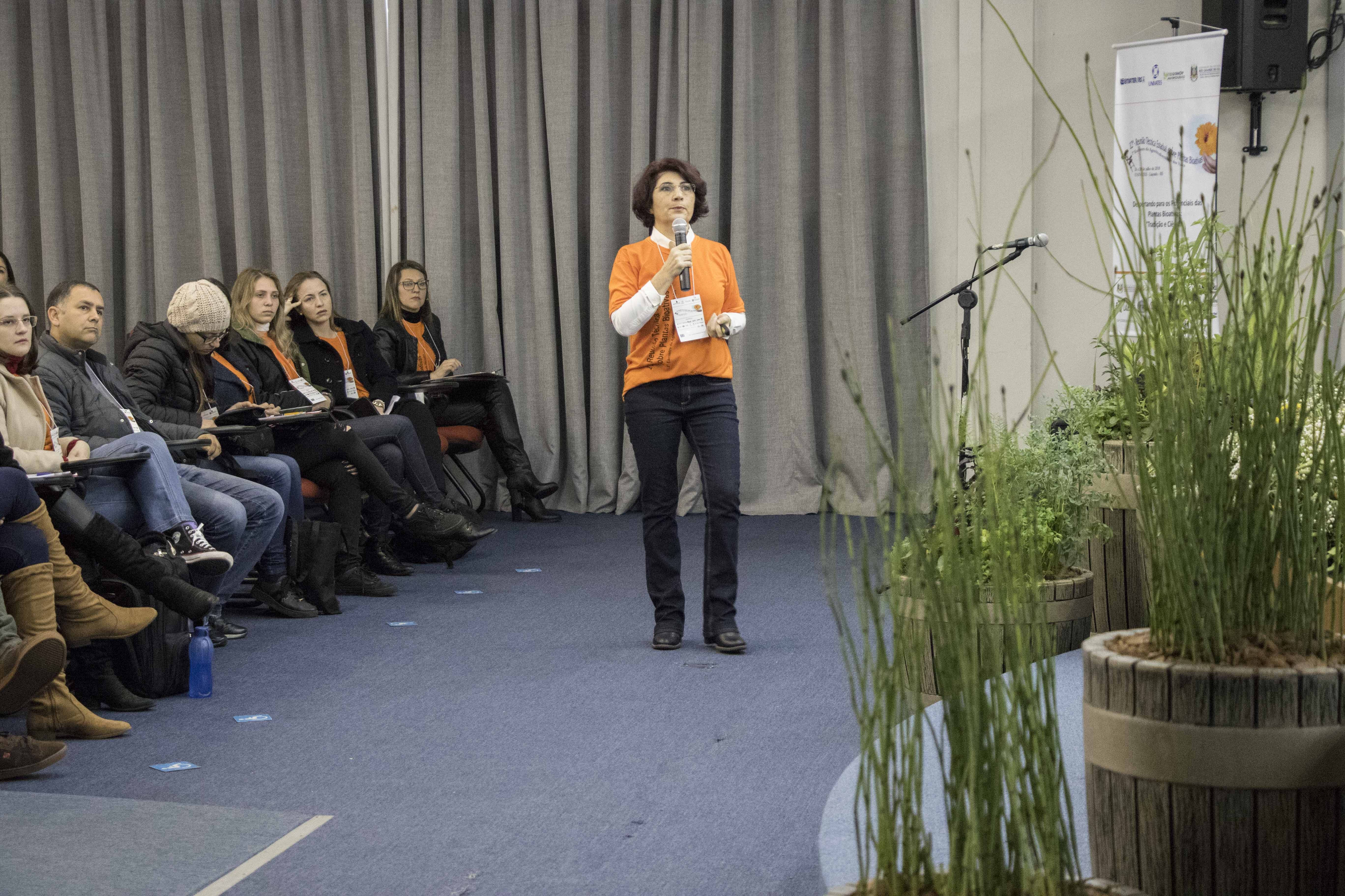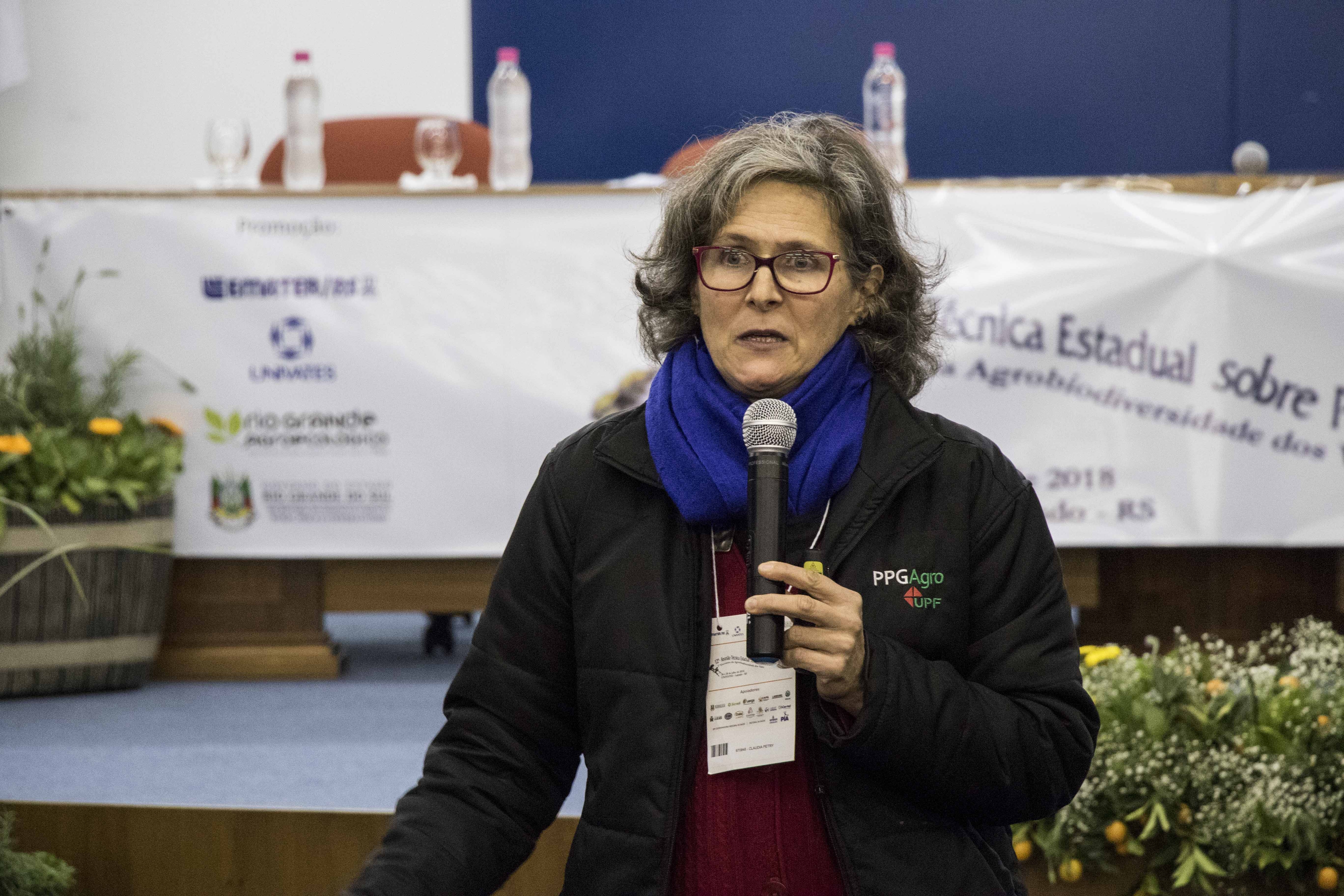 Nesta sexta-feira, 27, o evento recebeu a engenheira agrônoma, professora doutora Cláudia Petry. Com a palestra “(Re)Conhecendo as irmãs plantas: respeito e sensibilização à vida”, a coordenadora do Núcleo de Estudos em Agroecologia (NEA) da Universidade de Passo Fundo (UPF) provocou os presentes ao incentivar a desconstrução do antropocentrismo e abordar a inteligência vegetal. “A partir do momento em que estimularmos quintais e agricultores, voltaremos a viver bem”, afirmou. Durante sua fala, Cláudia criticou a “parafernália eletrônica” e o seu domínio sobre os humanos e voltou os olhares ao natural, ao “ser” e ao momento. “O mais valioso é o agora, compreender que tudo merece estar aí. O agora é a nossa única certeza”, salientou.