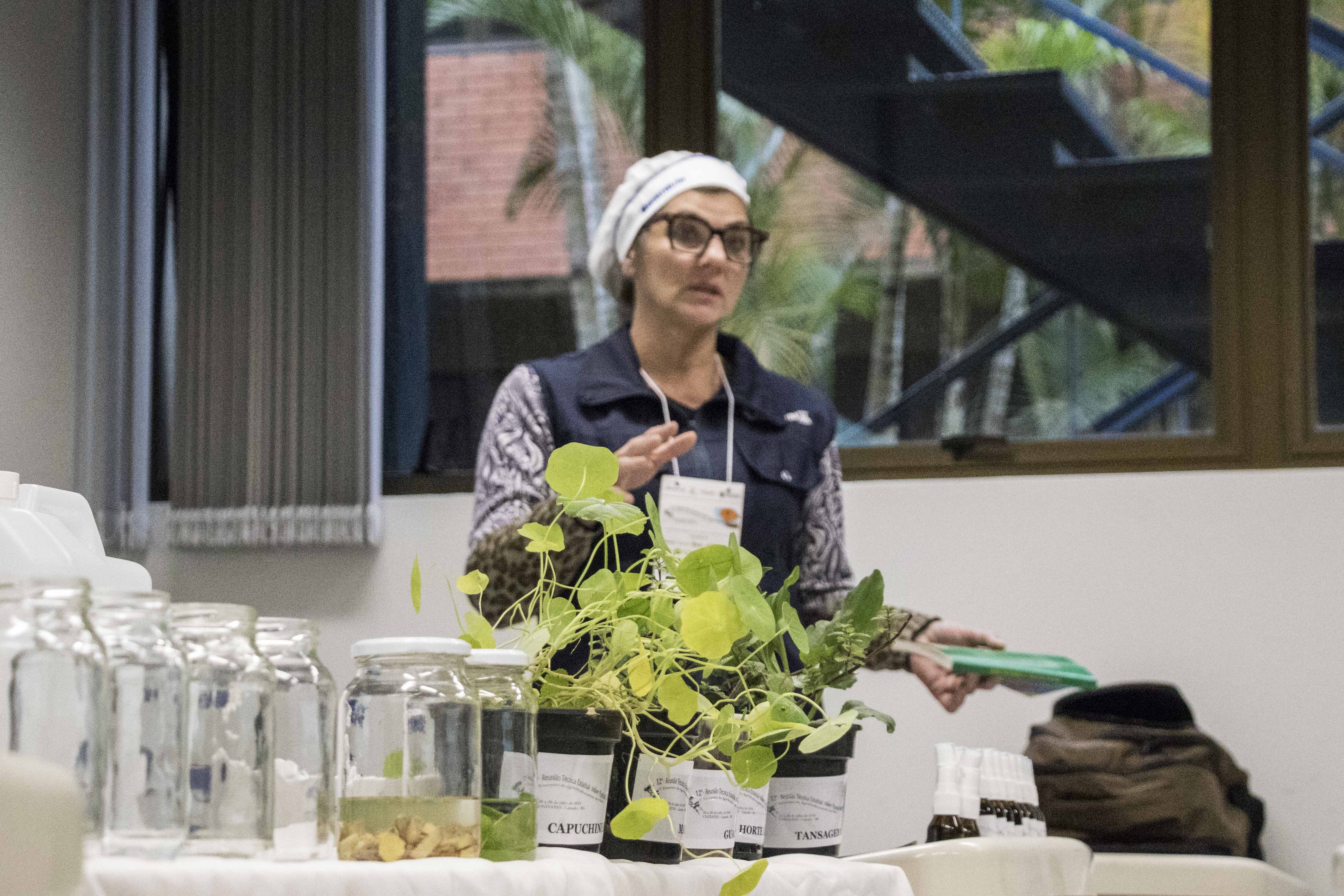 No painel “Potencialidades das espécies nativas”, realizado pela manhã, a doutora Elisete de Freitas abordou a importância das plantas originárias do Rio Grande do Sul, explicando que as espécies exóticas podem oferecer risco às espécies nativas. Elisete também falou sobre o potencial alelopático de algumas plantas, ou seja, a capacidade que essas espécies têm em inibir o crescimento e a germinação de outras plantas, agindo naturalmente como herbicidas naturais.