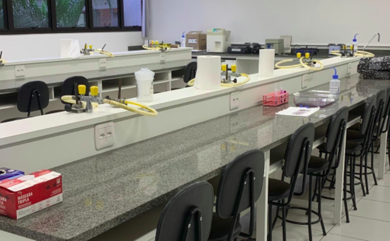 Laboratórios de Análises Clínicas - Laboratório de Parasitologia e UrináliseO Laboratório de Parasitologia e Urinálise é equipado para diferentes tipos de análises, como exames parasitológicos de fezes, testes bioquímicos e microscópicos de urina e práticas de hematologia, incluindo coleta de sangue e análise de seus componentes. Além disso, o espaço permite atividades de preparação e análise de lâminas histológicas. As práticas são desenvolvidas por professores e/ou alunos durante aulas práticas, projetos de pesquisa e trabalhos de conclusão de curso. O ambiente tem capacidade para até trinta e dois acadêmicos e atende disciplinas nas áreas de parasitologia, líquidos corporais, hematologia e histologia.