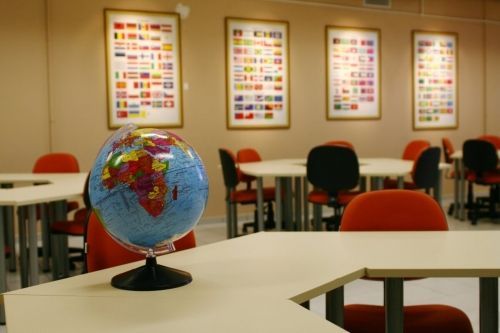 Principais recursos: globo terrestre, mesas especiais para trabalho em grupo, mesa de som etc