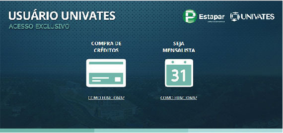 - Acesso ilimitado aos estacionamentos e somente com o Cartão Univates (Institucional), físico ou virtual.