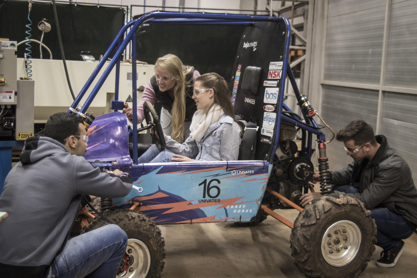 Estudantes podem participar do projeto Baja, uma competição entre Instituições de Ensino Superior de âmbito mundial e que desafia os estudantes de engenharia a projetar, construir e testar um veículo off-road.