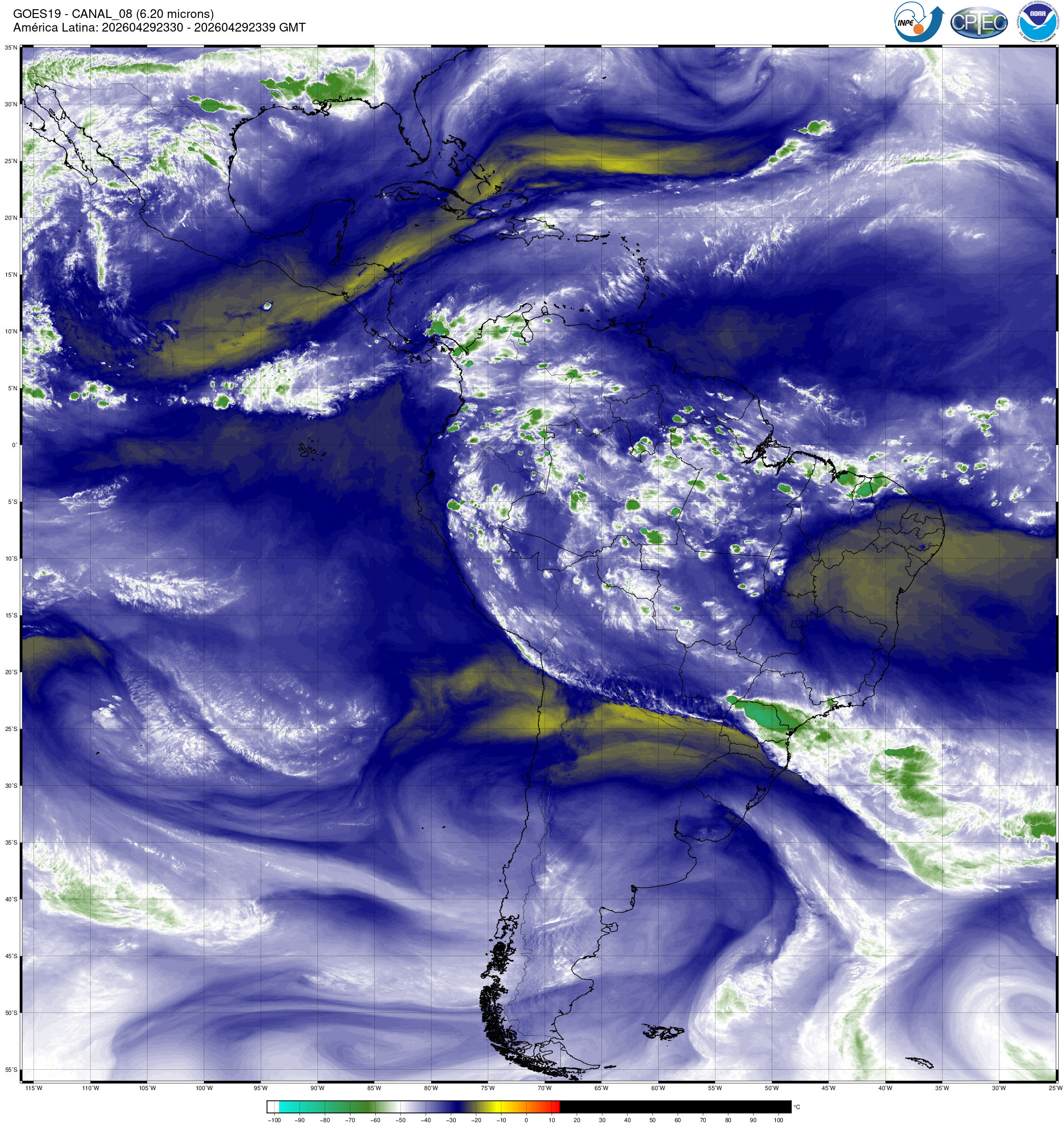 As imagens disponibilizadas nesta página são do satélite meteorológico geoestacionário GOES-16 (Geostationary Operational Environmental Satellite) da NOAA (National Oceanic & Atmospheric Administration), para os canais do visível, vapor de água e temperatura do topo de nuvens. Esse satélite permite um rastreamento muito mais acurado das bandas de nebulosidade, associadas a tempestades severas sobre diferentes regiões do Globo.