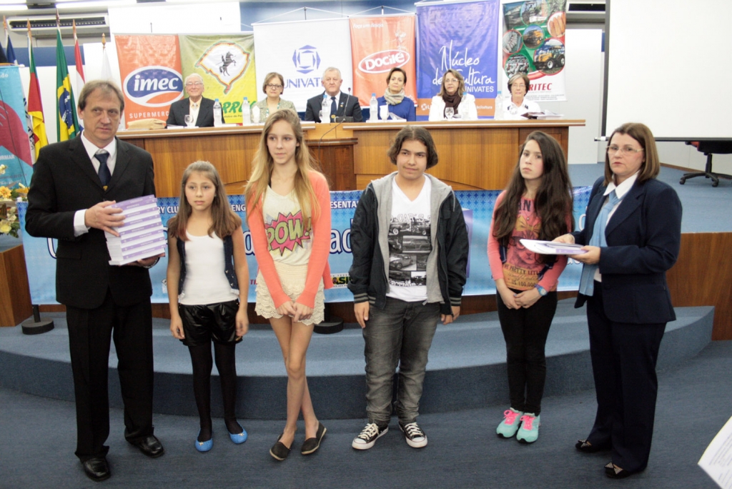 Na ocasião, estiveram presentes o escritor do prefácio do livro, Werner Schinke, a representante da 3ª Coordenadoria Regional de Educação, Marisa Bastos, a professora homenageada, Magda Teresinha Ehlers, o coordenador do Rotary Club Lajeado-Engenho, Carlos Rieth, a gerente do Núcleo de Cultura e Eventos da Univates, Ana Lúcia Pretto, e a representante da Secretaria de Educação de Lajeado, Rose Heemann, além dos estudantes autores dos textos e desenhos selecionados, seus familiares, professores e amigos.