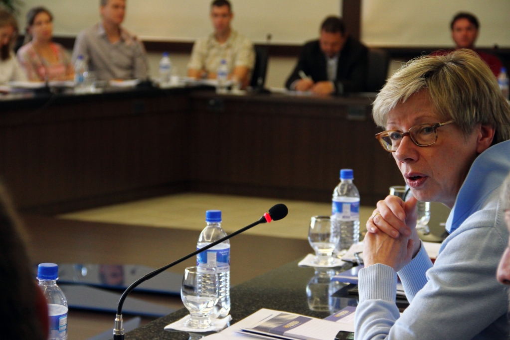 A gerente da Assessoria para Assuntos Interinstitucionais e Internacionais (AAII) da Univates, professora Viviane Bischoff, salientou que as universidades reunidas no encontro possuem muitos pontos em comum, e ressaltou a estreita ligação da Univates com a comunidade e a realização de trabalhos de cunho social, principalmente na área da saúde. Viviane ressaltou também que a área da Engenharia é forte na Instituição e parece ser um ponto em comum entre as universidades, lembrando que a Univates tem muito a aprender com as instituições do UAS7 nesse sentido. Ela lembrou, ainda, das disciplinas oferecidas em língua inglesa na Univates, inovação que compõe as ações do Projeto i.