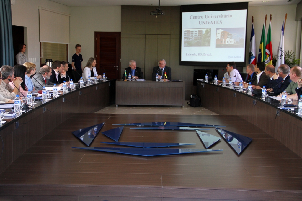 Na manhã desta quarta-feira, dia 4, a Univates recebeu os reitores das universidades integrantes do consórcio German Universities of Applied Sciences (UAS7), da Alemanha, composto por sete instituições das cidades de Berlin, Bremen, Cologne, Hamburg, Munich, Münster e Osnabrück. A visita teve o objetivo de estabelecer parcerias entre as instituições para intercâmbios acadêmicos e projetos de pesquisas.
