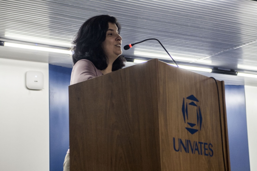 A abertura contou com falas da coordenadora do evento e do curso de Nutrição, professora Fernanda Scherer, da diretora do Centro de Ciências Biológicas e da Saúde, professora Magali Grave, e da pró-reitora de Ensino da Univates, professora Luciana Fernandes. Elas relembraram o início e as transformações pelas quais a atividade já passou nestes dez anos de existência. ?Não podemos esquecer que o conhecimento não acaba quando a gente se forma?, ressaltou a professora Luciana.