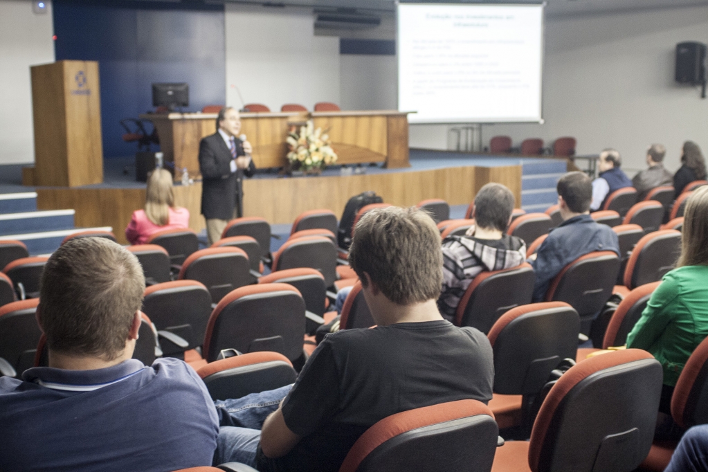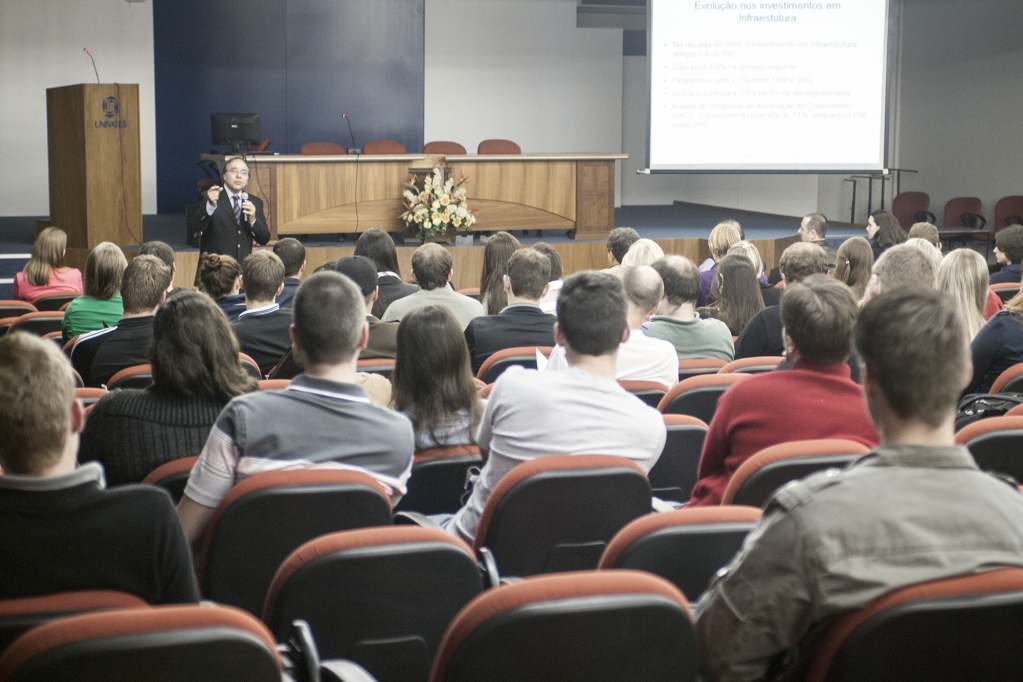 Para os alunos que serão graduados em breve, no entanto, ele afirmou que o mercado profissional é bem diferente daquele à época da sua formatura. Para ilustrar isso, o palestrante apresentou a previsão de investimentos do país até 2017, destacando as regiões sul e sudeste. ?Com o Programa de Aceleração do Crescimento, tivemos aumento de 51% em investimentos de infraestrutura?, destacou ele.