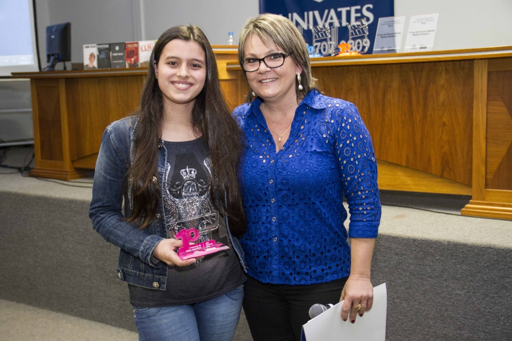 Com o tema da video-oratória ?O poder da leitura?, a aluna do Colégio Madre Bárbara Ana Letícia Marques ficou em primeiro lugar na categoria 1ª série do Ensino Médio. Já na modalidade 2ª série do Ensino Médio quem se destacou e recebeu o prêmio de primeiro lugar foi a aluna do Colégio Sinodal Gustavo Adolfo, Eduarda Soletti.
