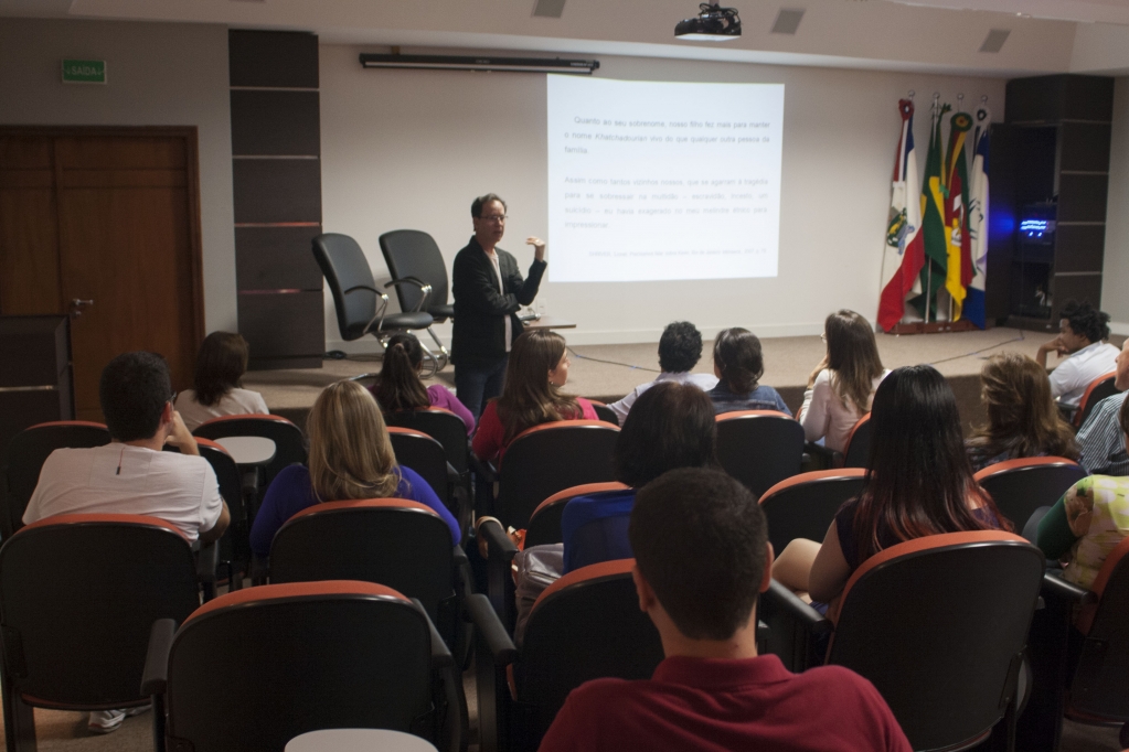 O Cine Psiquiatria promoveu, na noite da última quarta-feira, dia 22, exibição do filme ?Precisamos Falar sobre o Kevin" (2011), seguida de debate conduzido pelo psicanalista Sérgio Pezzi. A atividade ocorreu no auditório do Prédio 9 da Univates e foi coordenada pelo psiquiatra Rafael Moreno Ferro de Araújo.