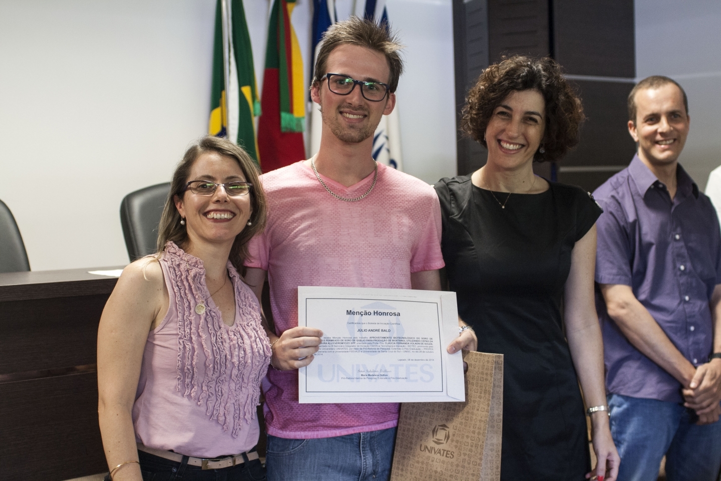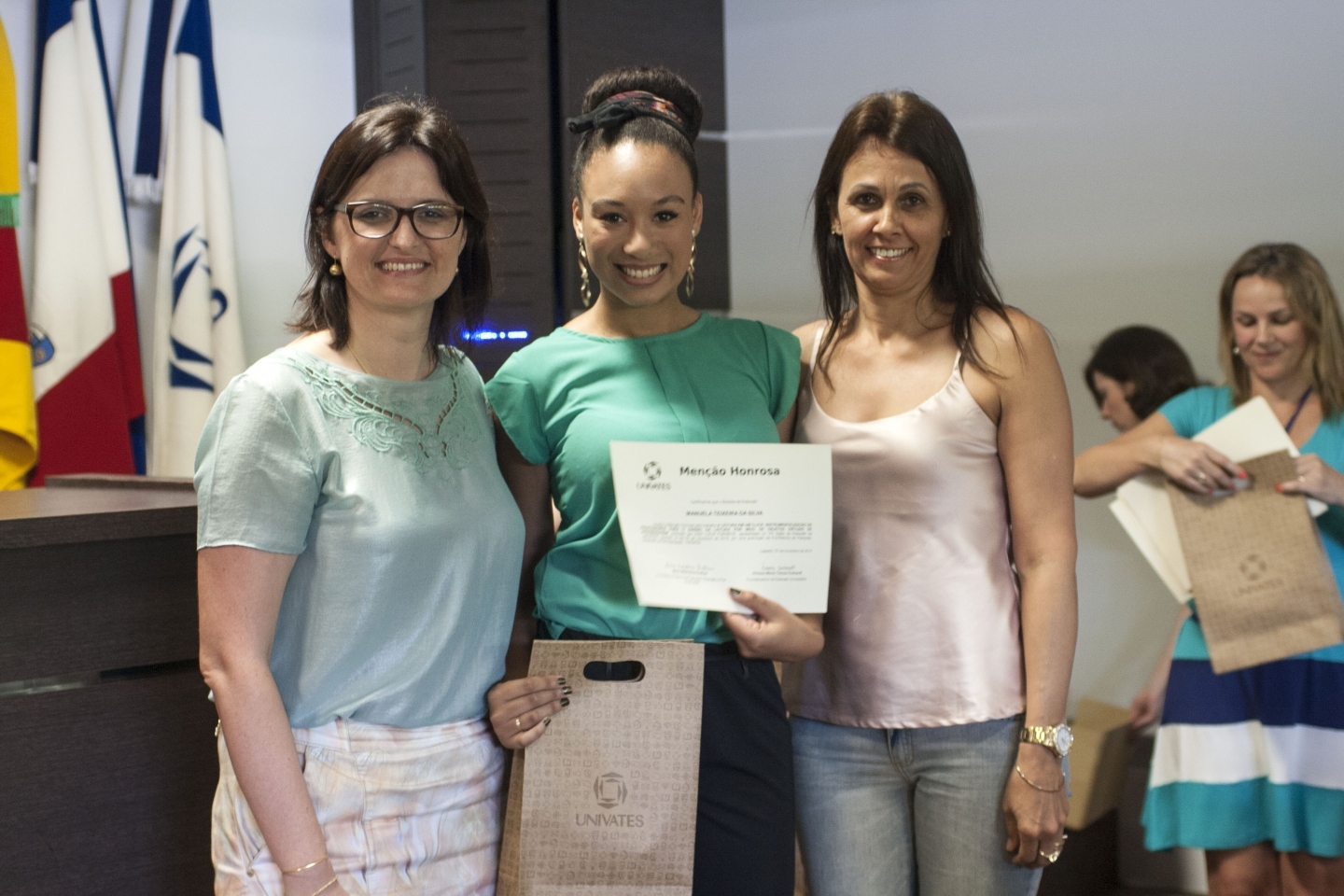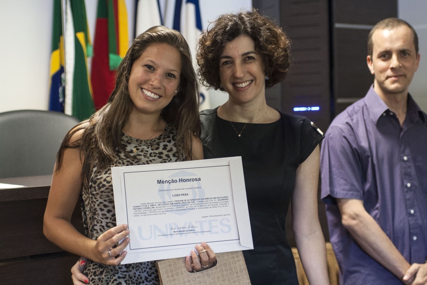 Os bolsistas com melhores avaliações no 13º Salão de Iniciação Científica (SIC), no 3º Seminário Integrador de Iniciação Científica (SicTec) e no 8º Salão de Extensão receberam os certificados de menção honrosa na tarde desta segunda-feira, dia 8. O evento contou com a presença de docentes, professores orientadores e bolsistas da Univates, da Universidade Federal de Ciências da Saúde de Porto Alegre (UFCSPA), da Universidade de Santa Cruz do Sul (Unisc) e da Feevale.