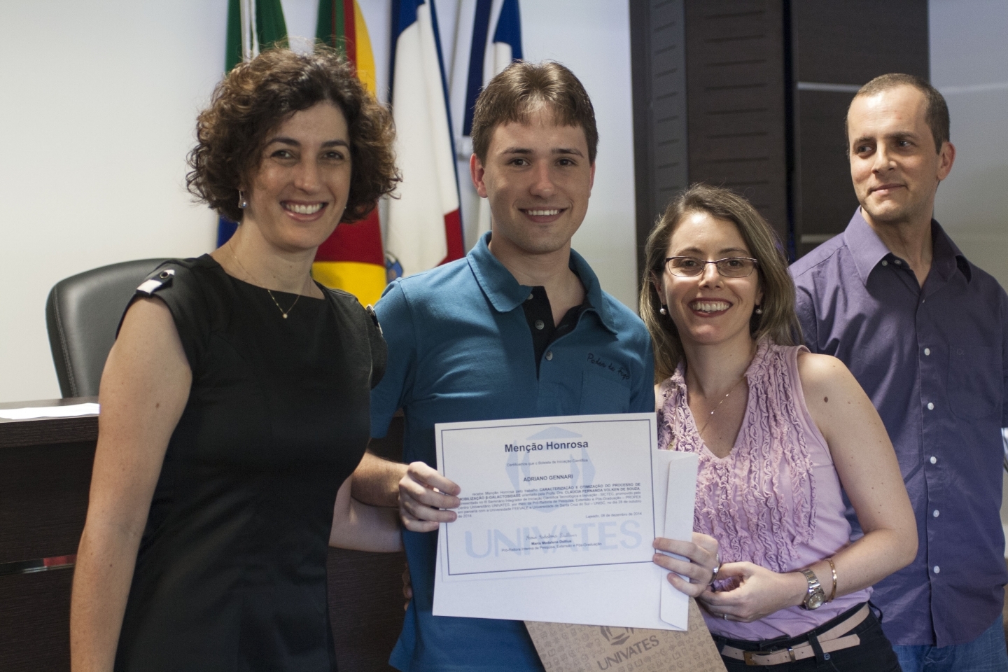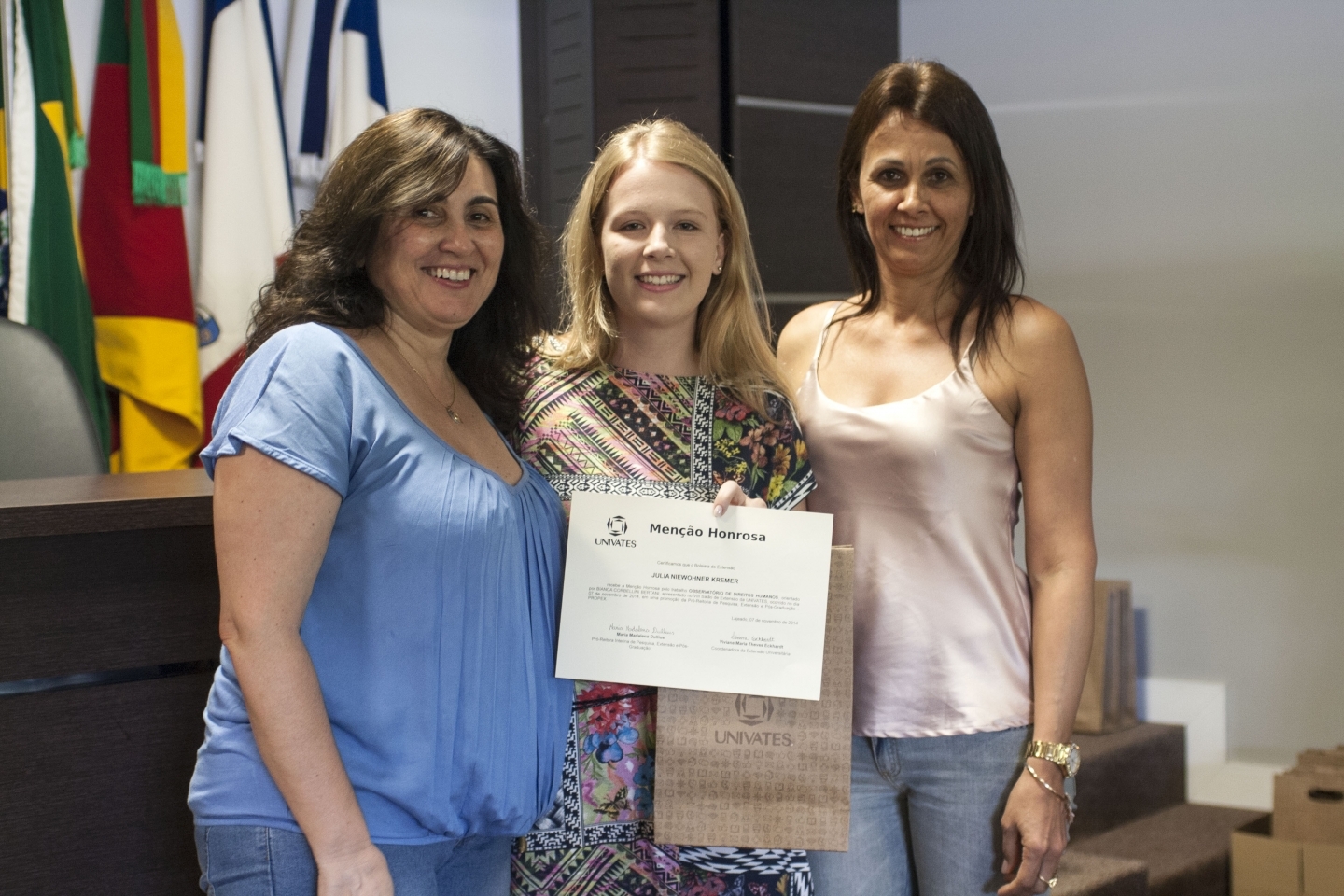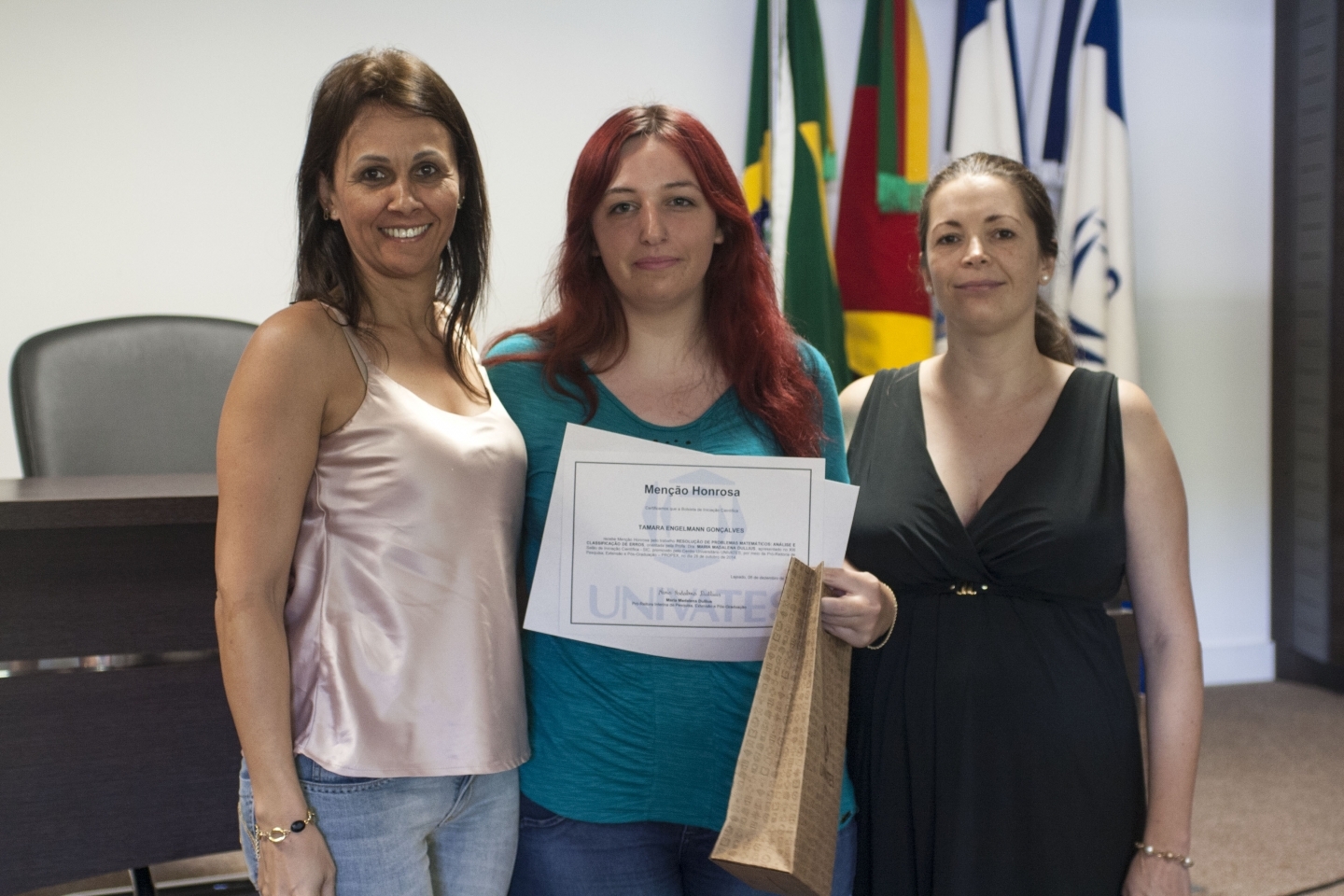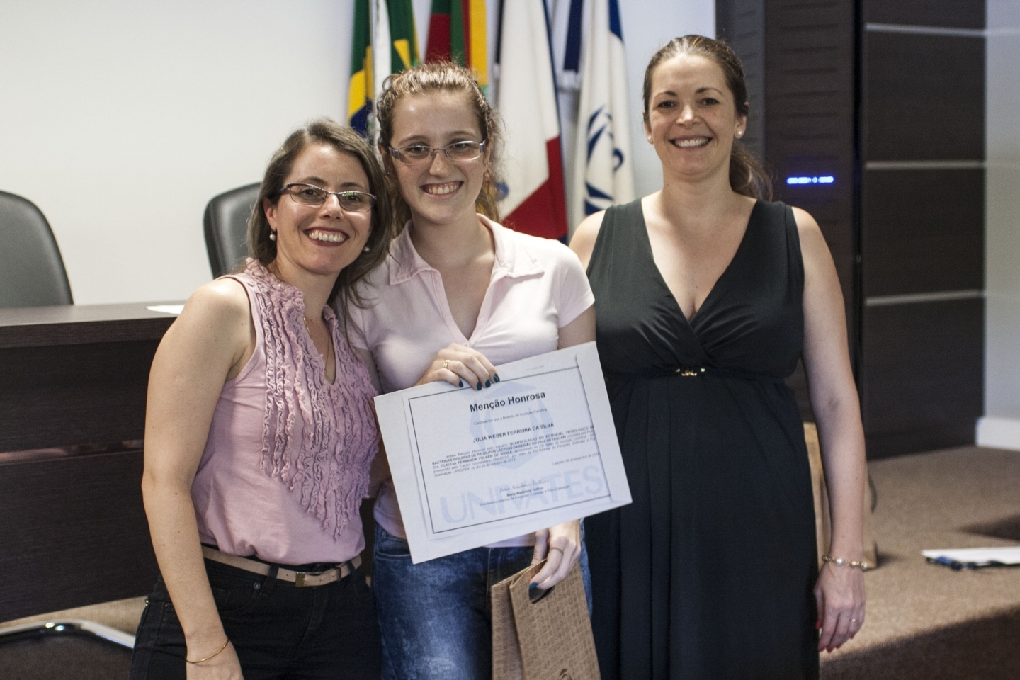 Os bolsistas com melhores avaliações no 13º Salão de Iniciação Científica (SIC), no 3º Seminário Integrador de Iniciação Científica (SicTec) e no 8º Salão de Extensão receberam os certificados de menção honrosa na tarde desta segunda-feira, dia 8. O evento contou com a presença de docentes, professores orientadores e bolsistas da Univates, da Universidade Federal de Ciências da Saúde de Porto Alegre (UFCSPA), da Universidade de Santa Cruz do Sul (Unisc) e da Feevale.