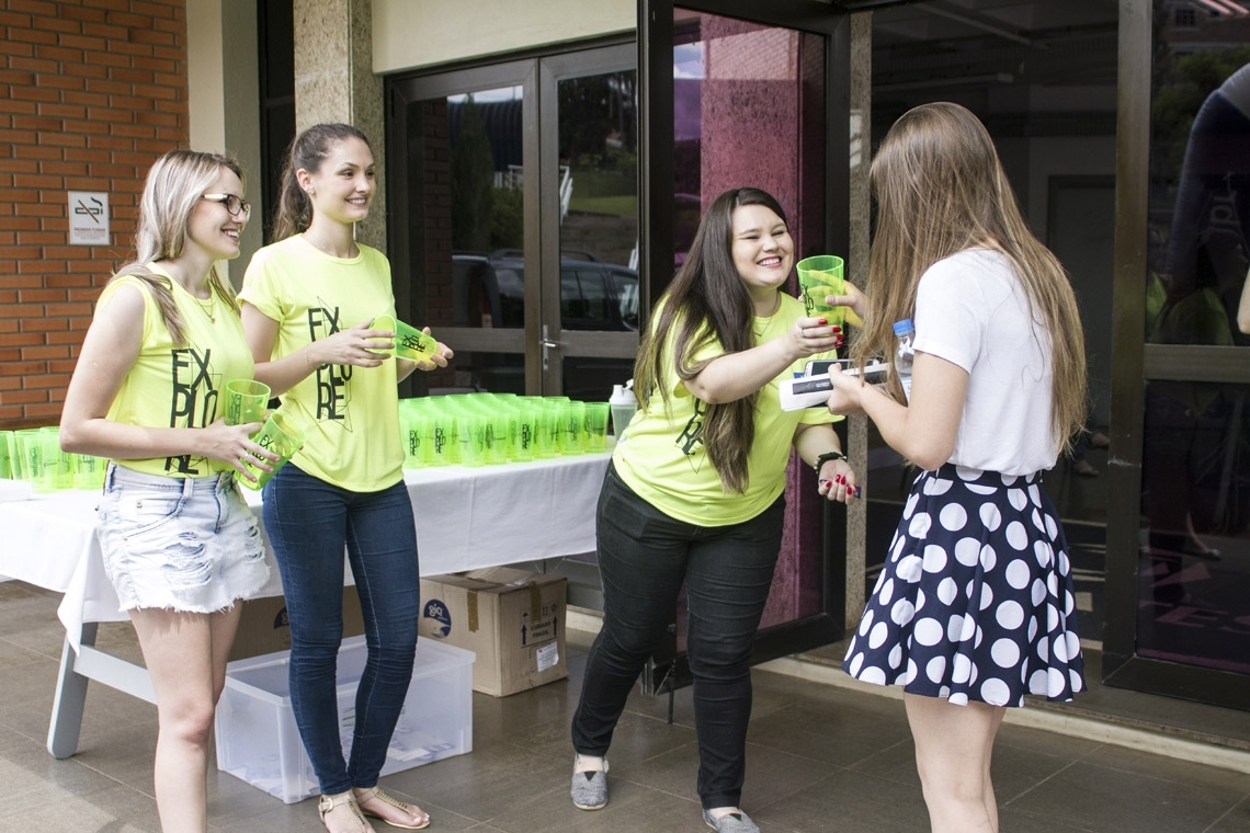 Para aguardar a realização da prova, os pais e acompanhantes dos candidatos foram recepcionados com um coquetel no hall do Prédio 11. Já os vestibulandos, quando deixaram a sala da prova, receberam como brinde um copo neon personalizado da Univates.