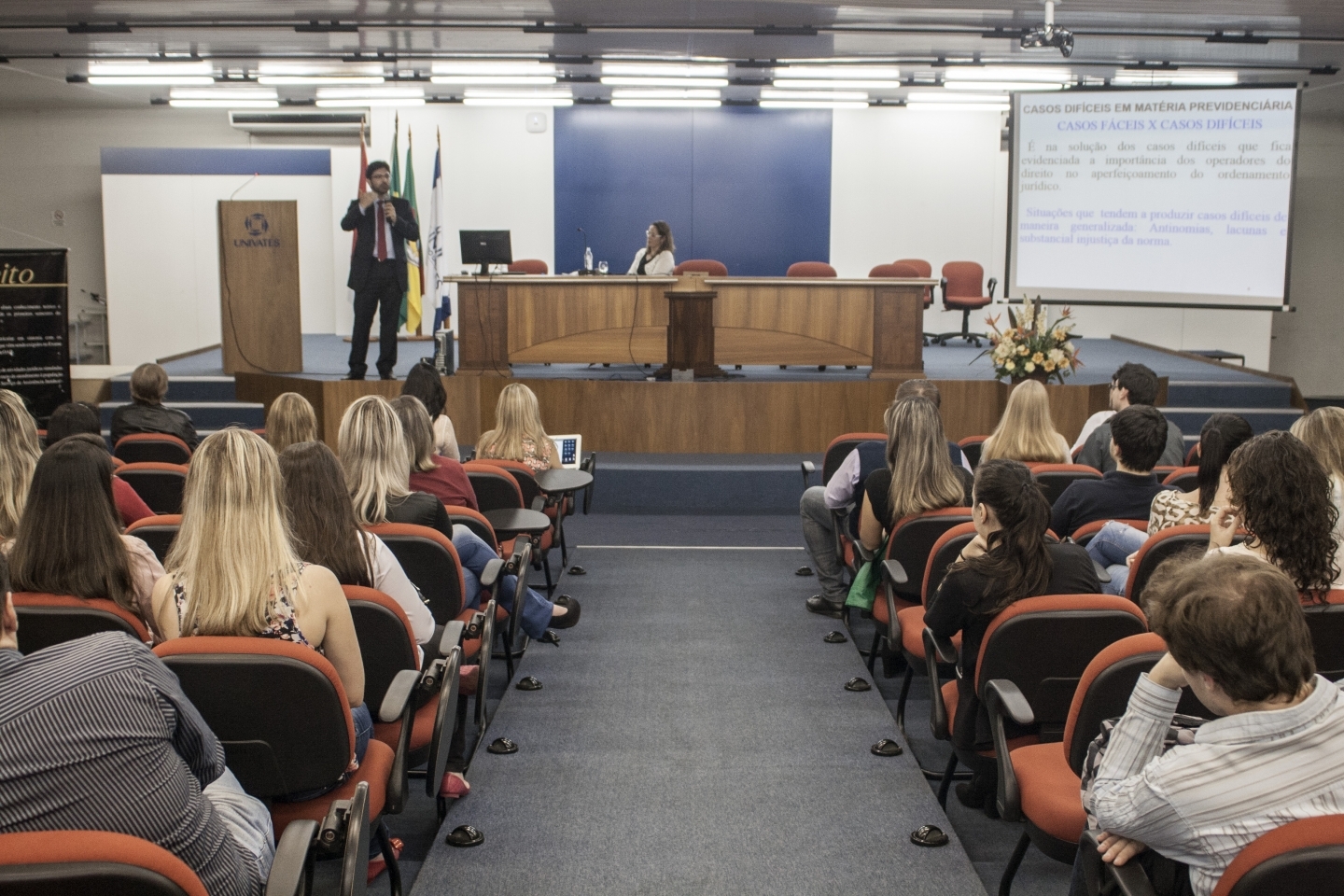 O curso de graduação em Direito e a pós-graduação, em nível de especialização, em Direito Previdenciário da Univates realizaram, na noite da última quarta-feira, dia 22, a aula inaugural do semestre. A atividade foi ministrada pelo doutor em Direito e juiz Federal Daniel Machado da Rocha, que abordou o tema ?Discutindo a interpretação criativa no Direito Previdenciário?.