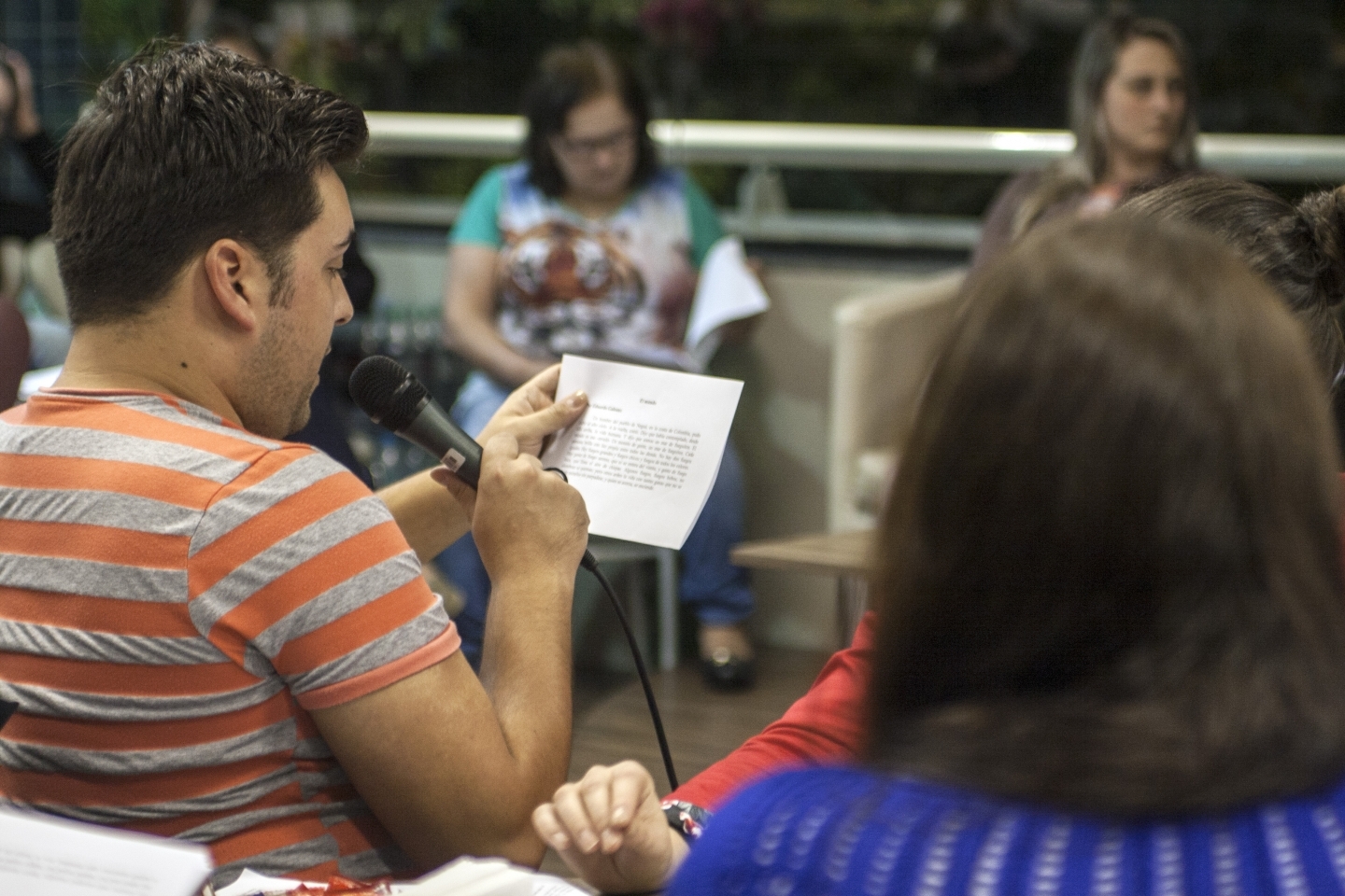 Alguns estudantes participaram da atividade lendo trechos do autor, tanto em português quanto em espanhol. Conforme a professora Rosiene, Galeano é capaz de deslocar nosso olhar para além do senso comum. ?Outra coisa para a qual ele dá muito valor é a cultura do povo?, ressaltou ela, comentando sobre as xilogravuras presentes no livro ?As palavras andantes?, feitas pelo artista de cordel nordestino José Francisco Borges.