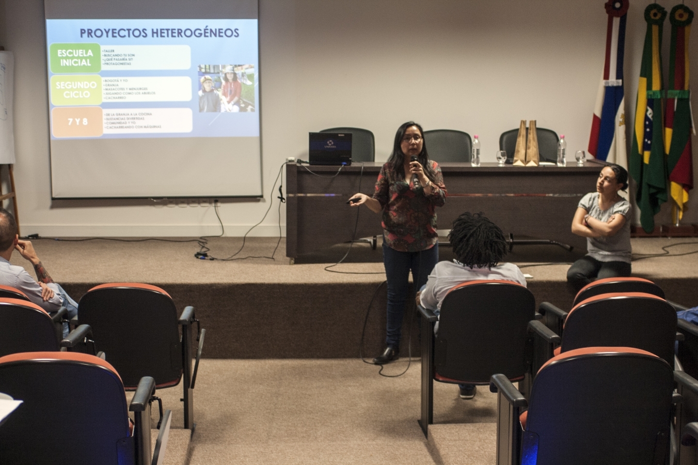 De acordo com as docentes colombianas, a escola é dividida por ciclos, de acordo com as faixas etárias ? Escuela Inicial, Segundo Ciclo, Tercer Ciclo e Cuarto Ciclo. ?A cada ano, um professor, conhecendo as diferentes características das crianças, elabora um projeto, que pode ser homogêneo ou heterogêneo. Para nós, não são importantes os dados, nos interessa trabalhar o conhecimento, e então essa informação passa a ser de geral a particular, de neutra para comprometida?, salientou Gloria.