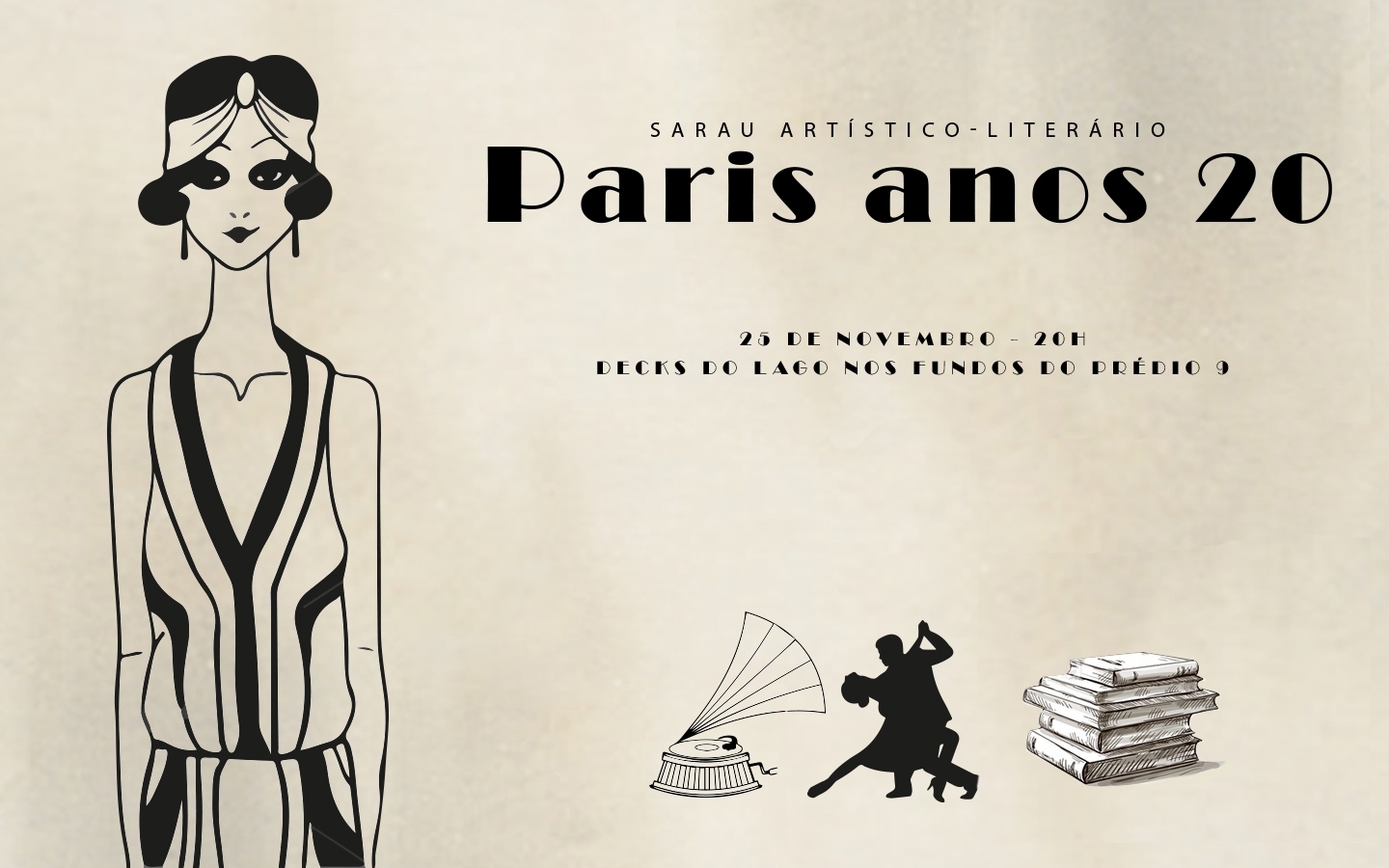 Os decks do laguinho da Univates serão local de sarau artístico-literário na próxima quarta-feira, dia 25 de novembro, a partir das 20h. Com o tema ?Paris anos 20?, o evento tem como objetivo trabalhar com literários franceses da época, criando, também, uma atmosfera da cidade, com cenário, figurino e música da França.