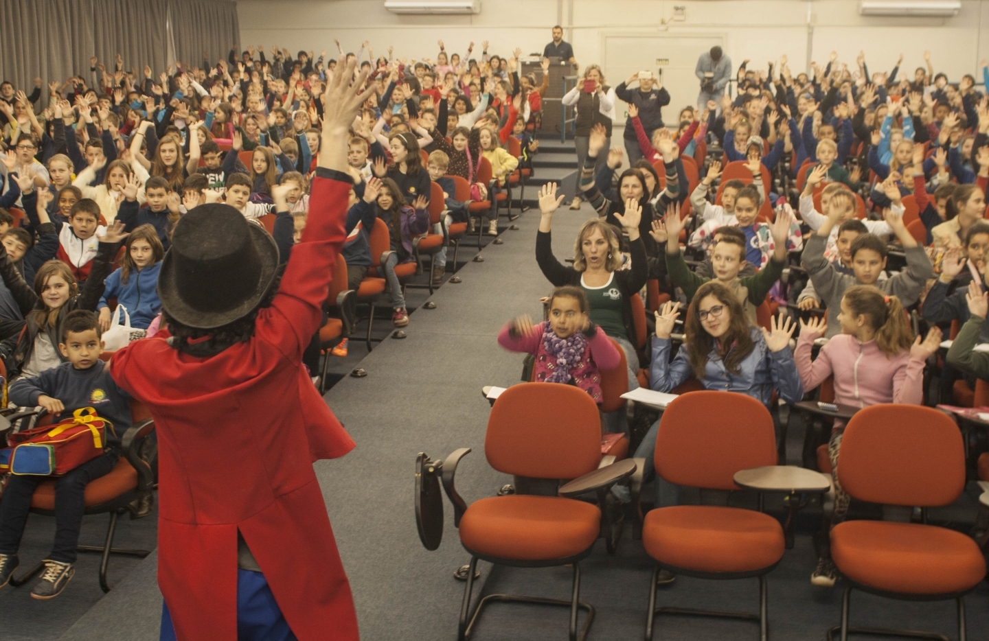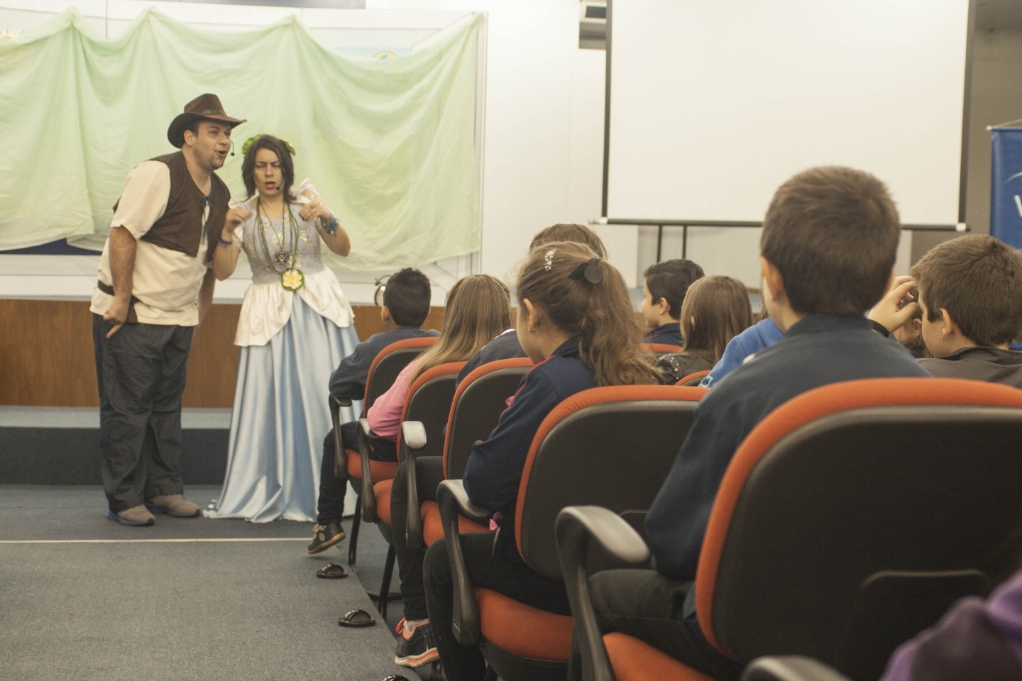 No auditório do Prédio 7, alunos da Educação Infantil e das séries iniciais do Ensino Fundamental assistiram à peça “O Mistério da Água”, realizada pela Trupe Tal & Qual. Após o intervalo, as crianças participaram de oficinas, realizadas pela Univates e pela Secretaria Municipal de Meio Ambiente de Lajeado.