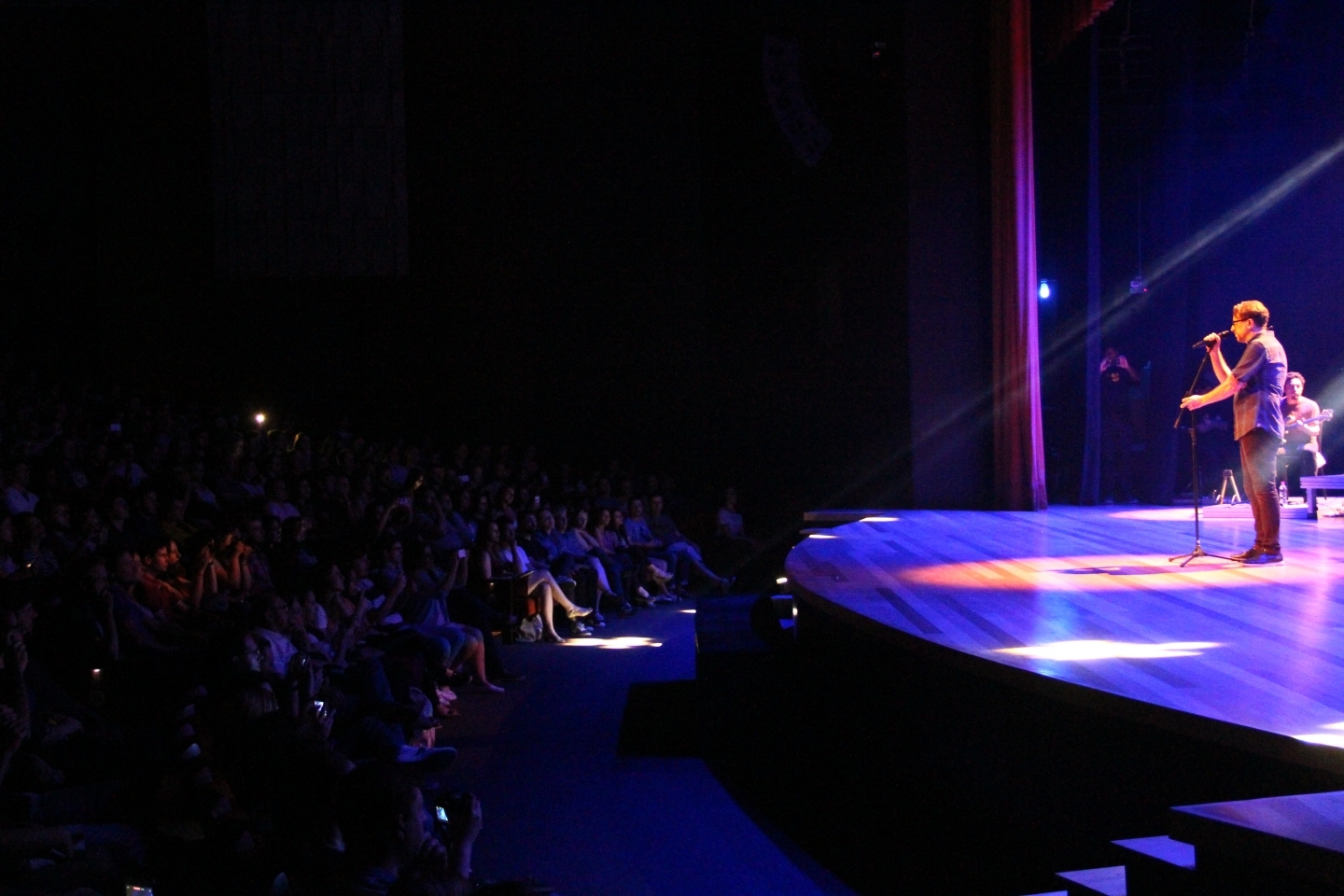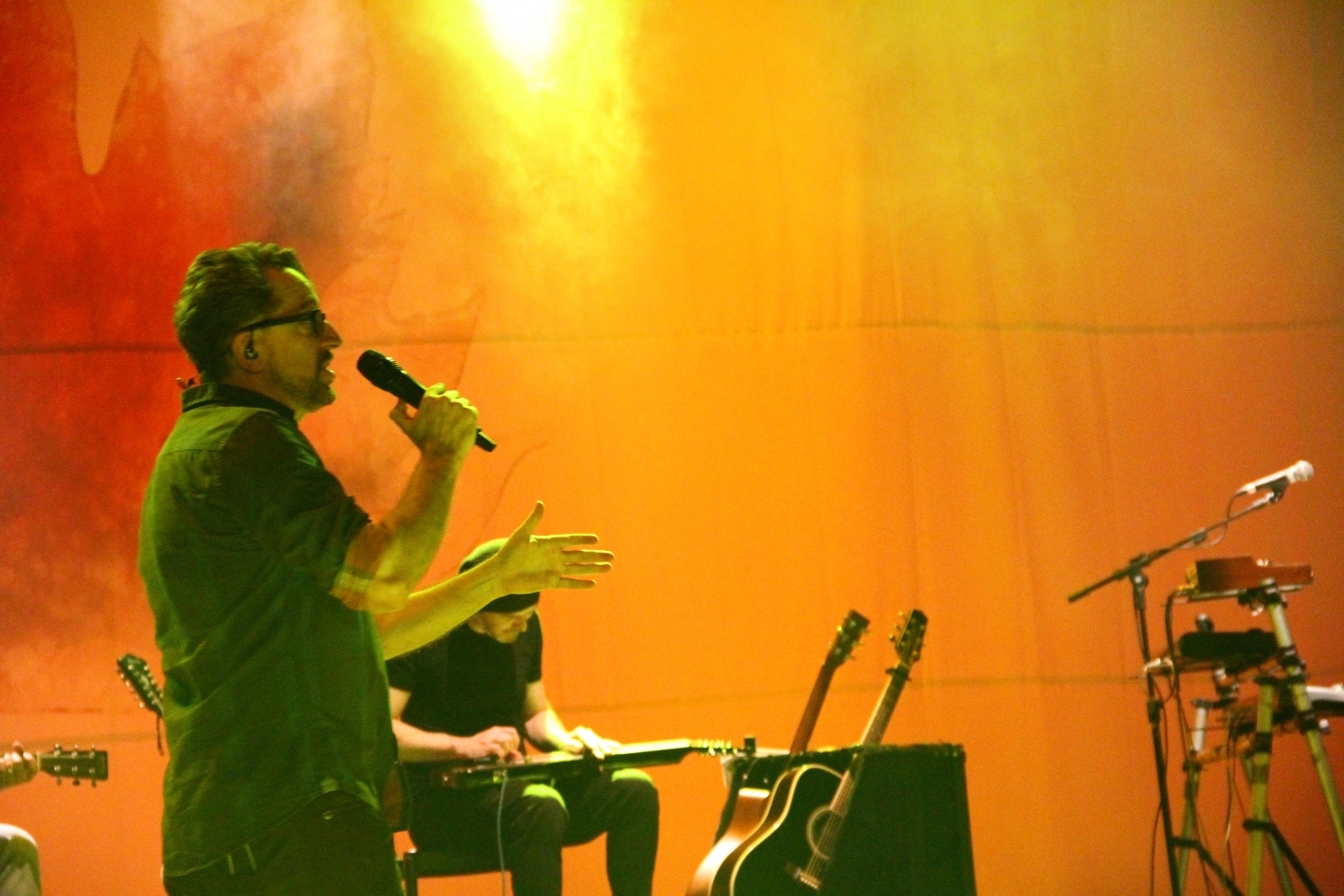 O show começou às 21h15min. A primeira canção, ?Sobre o Tempo?, parece ter sido minuciosamente escolhida para abrir a noite de clássicos do rock gaúcho. Entre uma música e outra, o vocalista conversava com a plateia, que cantava em coro o refrão de cada música e demonstrava um carinho especial toda vez que João Vicenti pegava seu acordeon ? o Nenhum de Nós foi pioneiro ao introduzir o instrumento no rock brasileiro.
