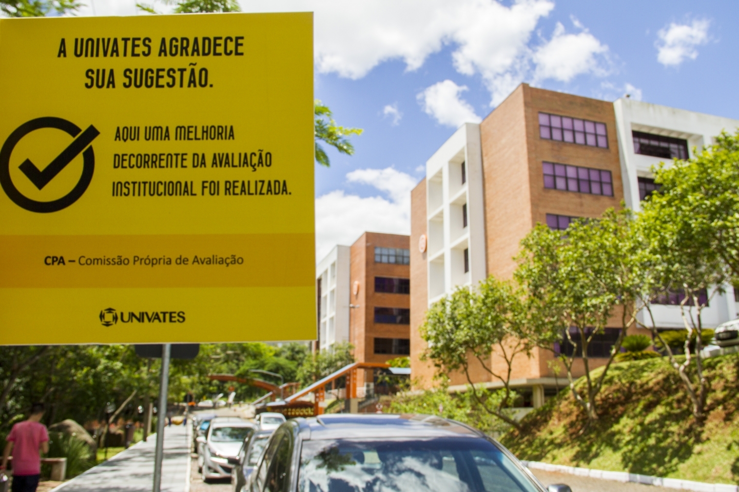 “Aqui uma melhoria decorrente da Avaliação Institucional foi realizada”. Para quem caminha pelo campus da Univates esta frase passa a ser vista em diversos locais. A citação, gravada em placas amarelas, busca sinalizar as ações que são implementadas por meio de sugestões feitas durante o processo de Avaliação Institucional.