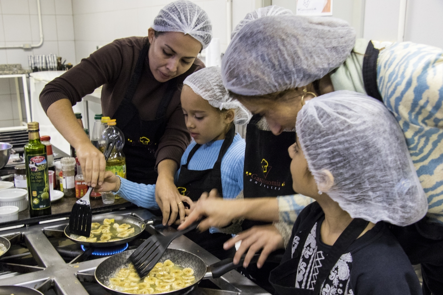 Umas das principais ?receitas? para a convivência saudável entre mães e filhos se baseia na troca de experiências. O ingrediente ganha ainda mais sabor quando vivenciado de forma conjunta. Foi justamente isso que o curso de educação continuada da Univates ?Minichefes: Filhos e mães? proporcionou neste sábado, dia 13. Durante a manhã, a Cozinha Pedagógica esteve movimentada para a preparação de galinha escabelada e sobremesa de banof.