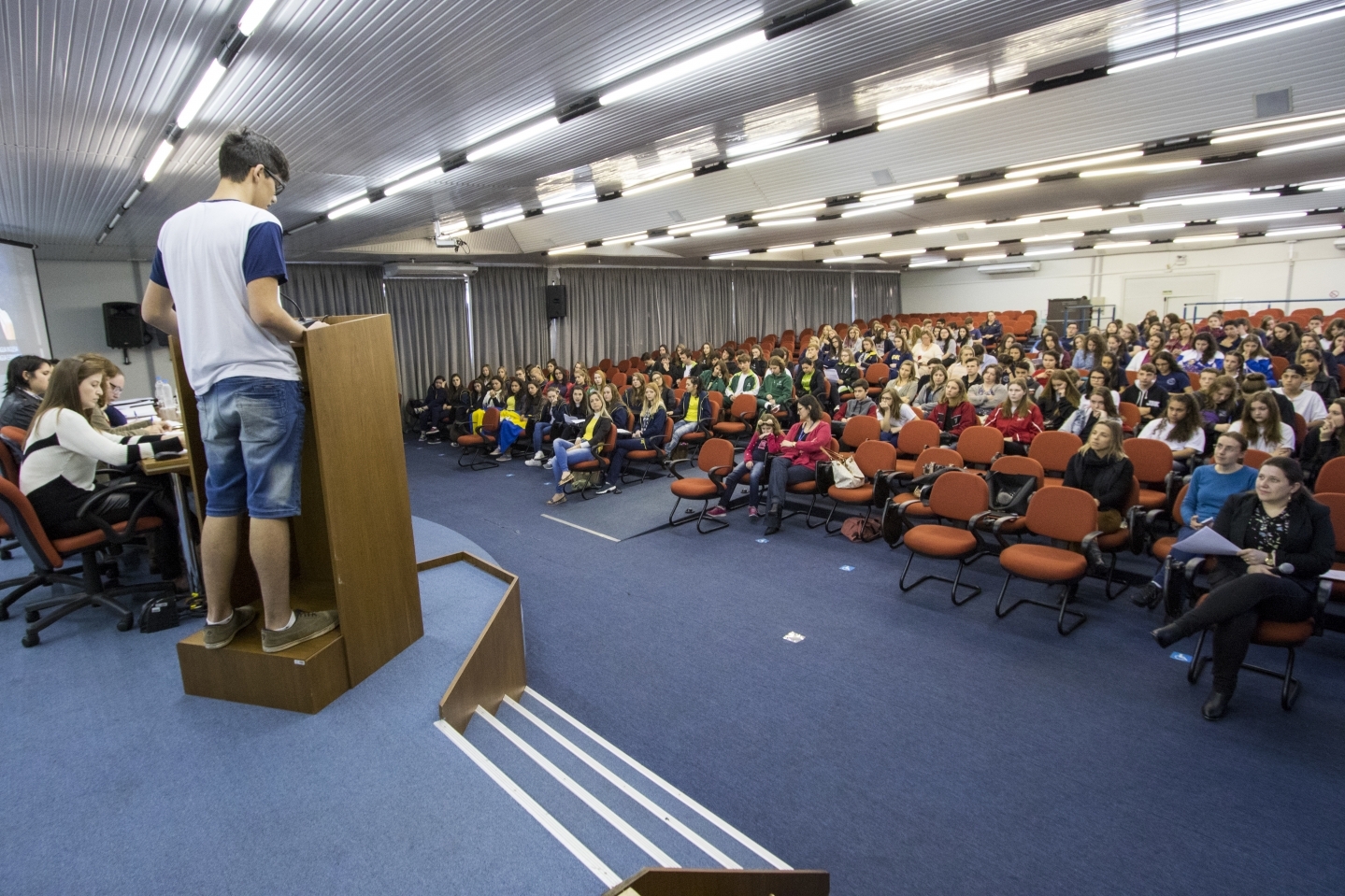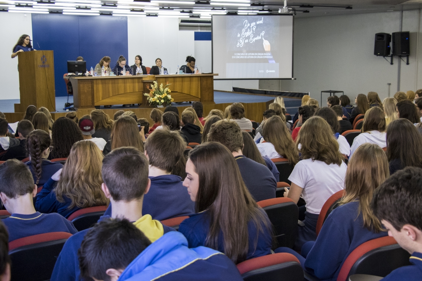 A leitura de textos em inglês e espanhol quebrou o silêncio que se fazia presente na plateia do auditório do Prédio 7 da Univates. O momento marcou mais uma edição do X Concurso de Leitura em Língua Inglesa e do IV Concurso de Leitura em Língua Espanhola, eventos realizados na manhã desta quarta-feira, dia 28.