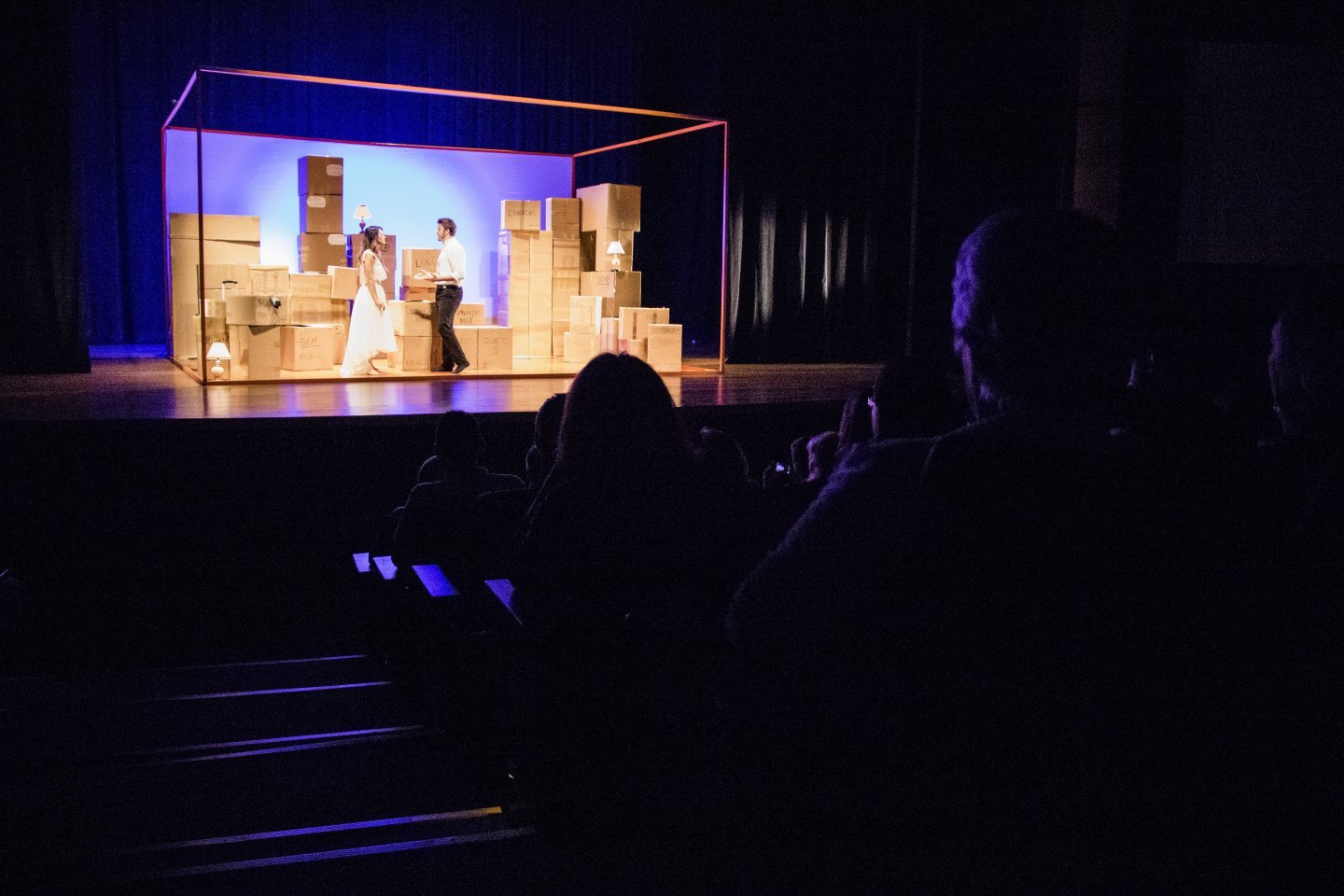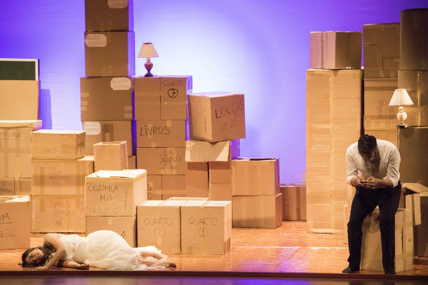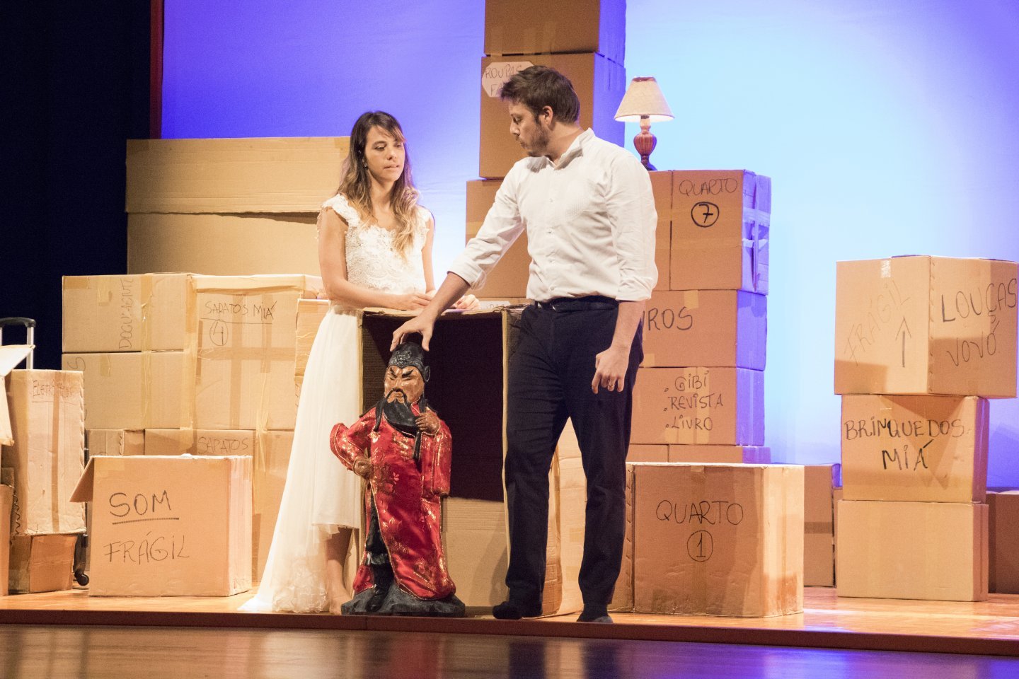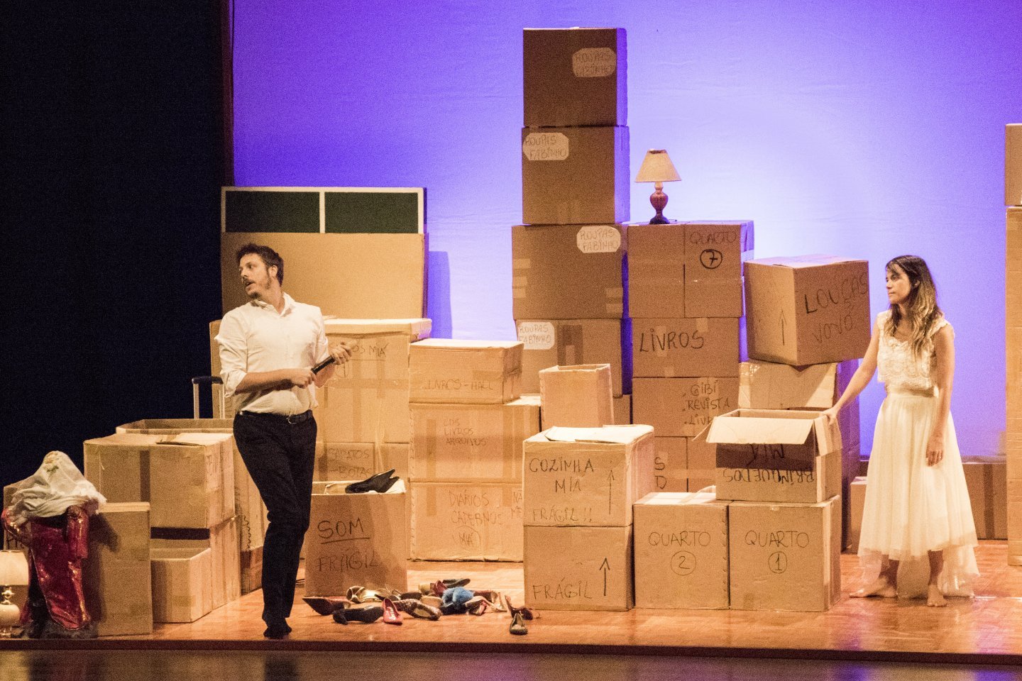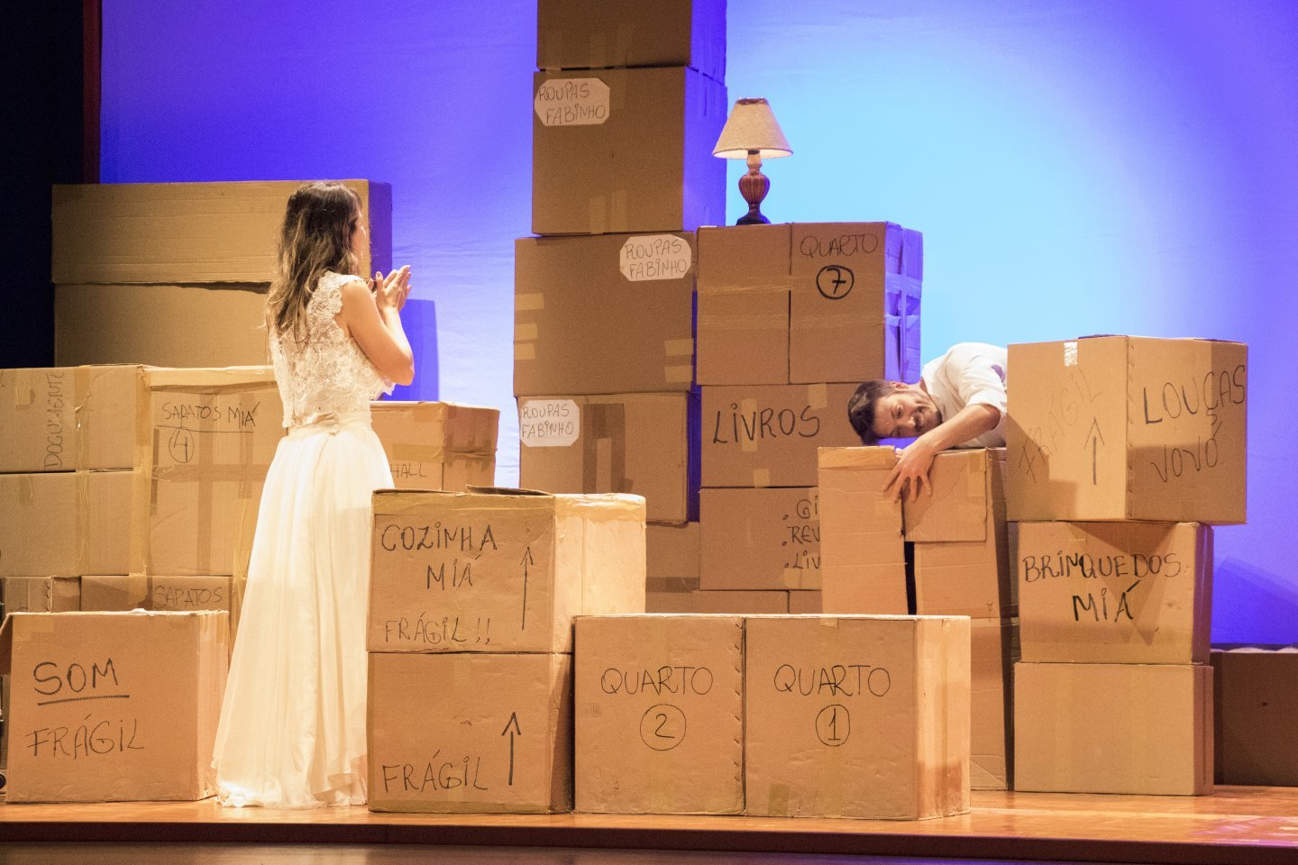O espetáculo inicia com os pombinhos chegando no novo apartamento após a festa de casamento. O local, pequeno e cheio de caixas de mudança e presentes de casamento, é preenchido com lembranças do passado, discussões e, claro, amor.