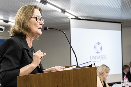 “Naquela época eu pensei: é nesta Instituição que eu quero trabalhar. Então estudei mais um pouco e vim a ser professora nos cursos de Letras e de outros cursos de graduação, além de atuar como gestora, sendo hoje integrante do corpo docente do curso de Direito”. Beatris Francisca Chemin