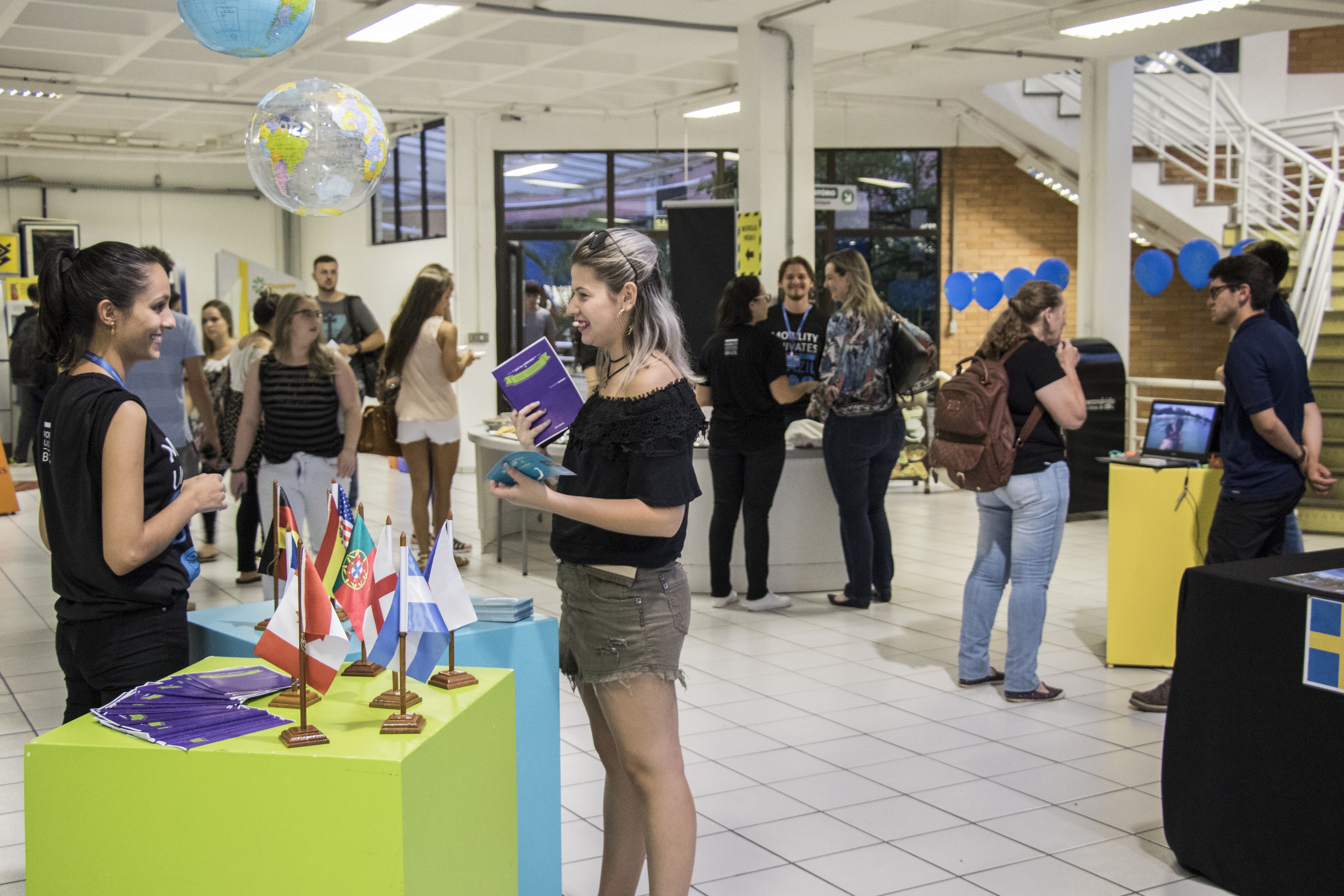 Até a próxima sexta-feira, dia 9, das 18h30min às 21h30min, o saguão do Prédio 9 terá estandes de diferentes países para auxiliar os estudantes conhecerem os locais de destino e para possibilitar a conversa com acadêmicos de outras instituições.