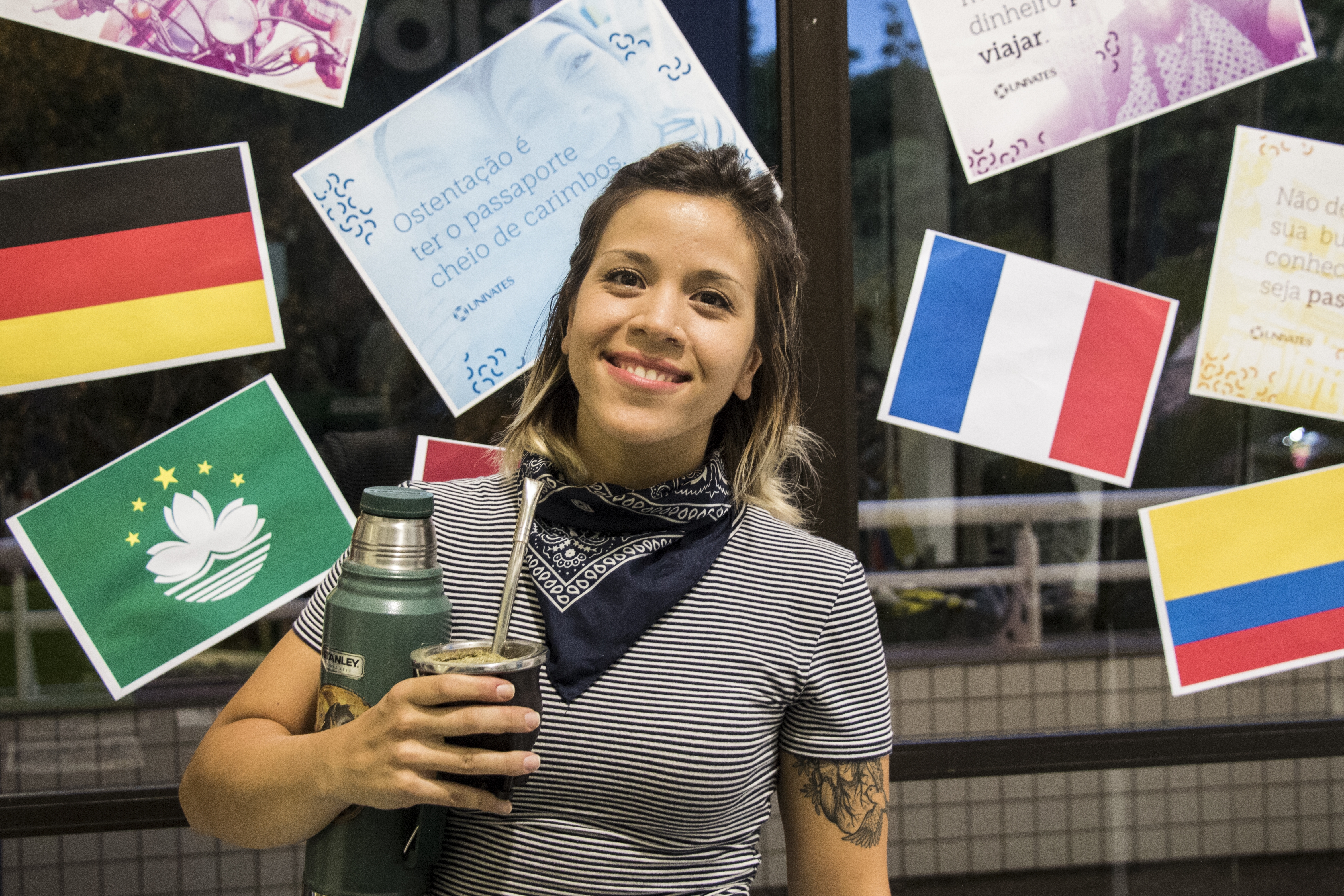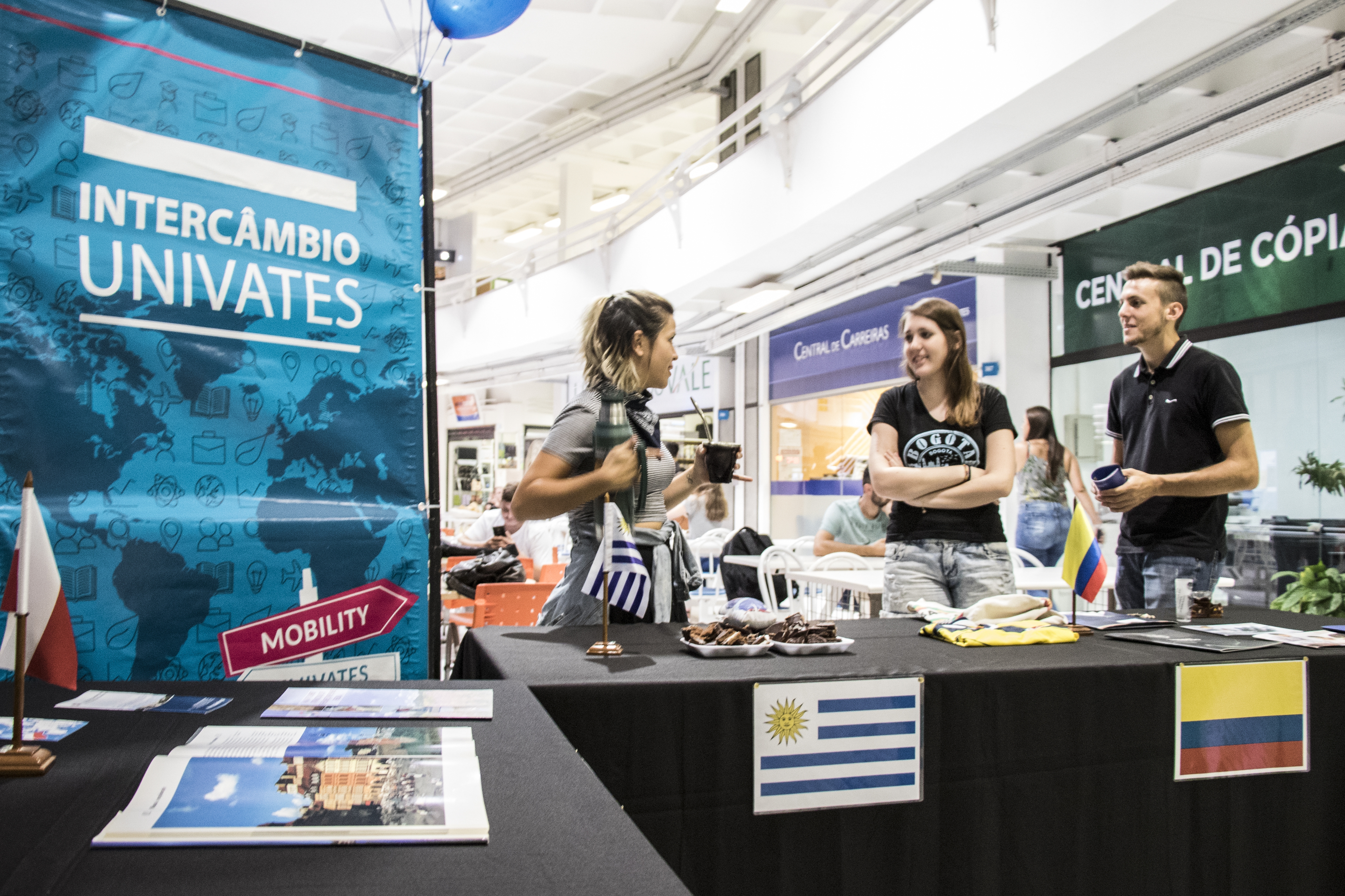 Diferentes culturas tomaram conta também do hall do Prédio 9 nesta segunda-feira, dia 5. Espaços especiais foram destinados para os intercambistas que vêm para a Univates mostrarem mais sobre seus países de destino.