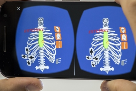 Nesse contexto podemos citar o aplicativo Esqueletek, que possibilita, com o uso de um smartphone e um óculos de Realidade Virtual, visualizar três estruturas ósseas: o crânio, a caixa torácica e o braço. Guiado por um cursor central no cenário, o programa garante ao usuário a identificação do nome de cada osso, rotacionando os elementos livremente.