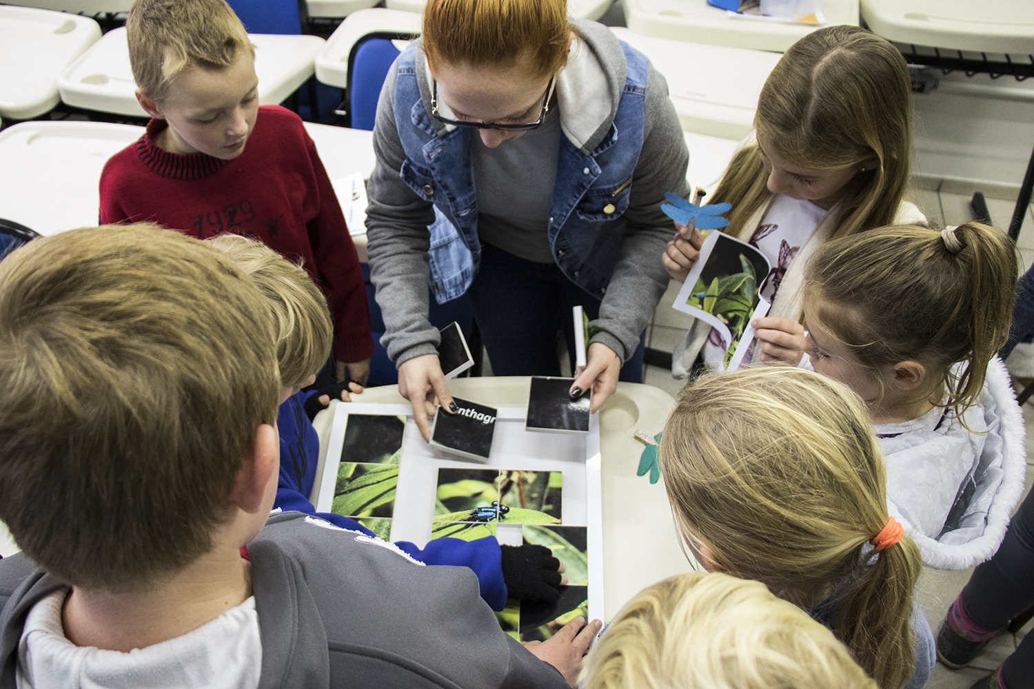 Além de conhecerem o Museu de Ciências, os alunos participaram de uma explicação sobre a vida das libélulas e realizaram uma brincadeira de “caça ao inseto”, em que procuraram libélulas fictícias feitas com grampos de roupa, que depois puderam ser levadas para casa.