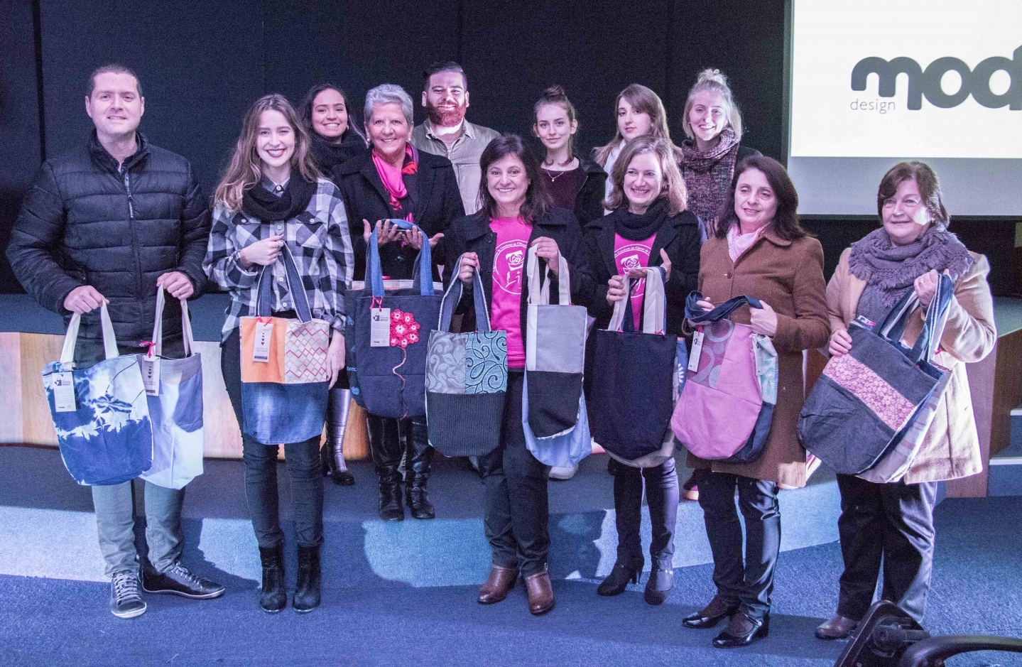 Desde 2016, estudantes do curso de Design de Moda da Univates realizam o projeto voluntário “Levando amor”, em que são confeccionados acessórios em benefício da Liga Feminina de Combate ao Câncer de Lajeado. As peças confeccionadas no primeiro semestre deste ano foram entregues à Liga na última quinta-feira, 5, durante a abertura dos desfiles dos Trabalhos de Conclusão de Curso. Participaram do evento as voluntárias da entidade e representantes da empresa Pitty Jeans, que forneceu a matéria-prima para as peças.