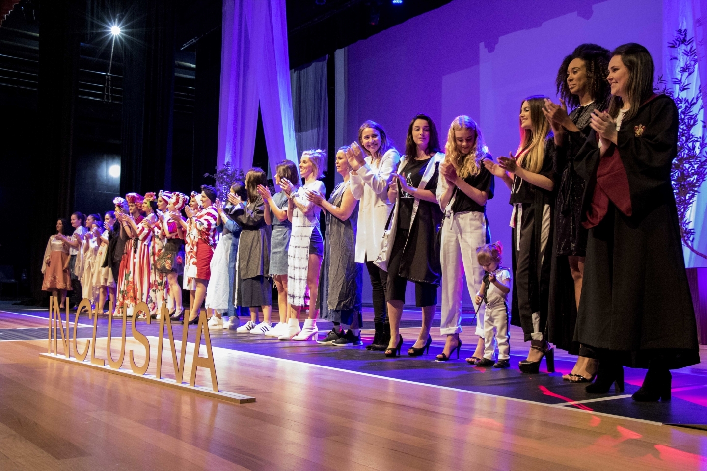 Na sequência, cinco coleções foram apresentadas ao público, com temas diferentes escolhidos pelas diplomadas em seus Trabalhos de Conclusão de Curso (TCCs). Além das designers de moda, o evento contou com a participação de alunos de Estética e Cosmética, Fisioterapia e Psicologia, totalizando 30 envolvidos. “Cada modelo contou com uma equipe multidisciplinar, que realizou não só o processo de escolha dos participantes, mas observou as necessidades de cada um e o que era preciso nos bastidores”, explicou a coordenadora do curso de Fisioterapia, Lydia Koetz.